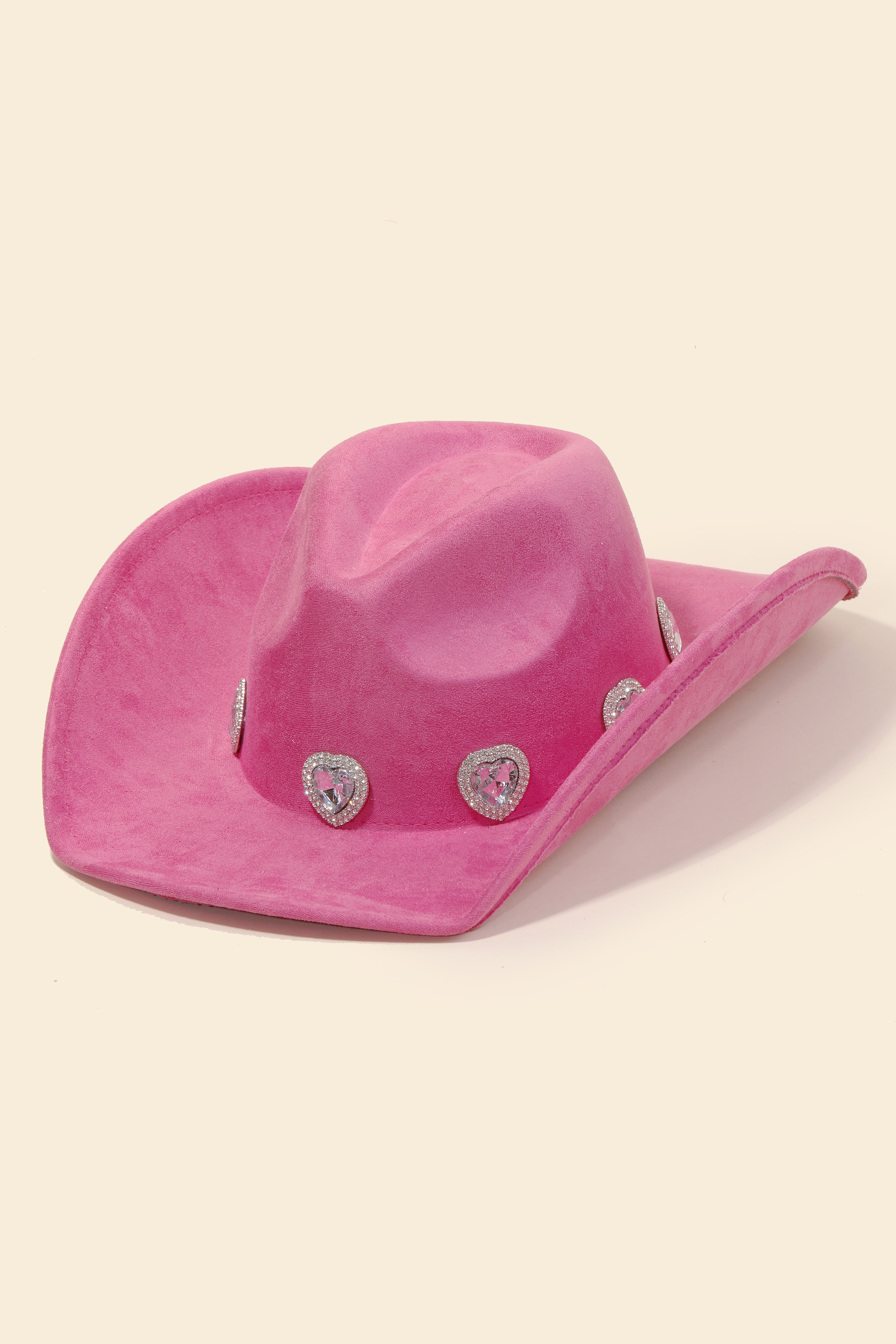 • Sleek, modern, and always stylish, this cowboy hat flaunts a luxurious large rhinestone pave heart design. Unlock endless styling possibilities with this versatile cowboy hat, creating a signature look that speaks volumes. Available in BK, FU, IV, PK, PU, RD. This item is sold in packs of 1.