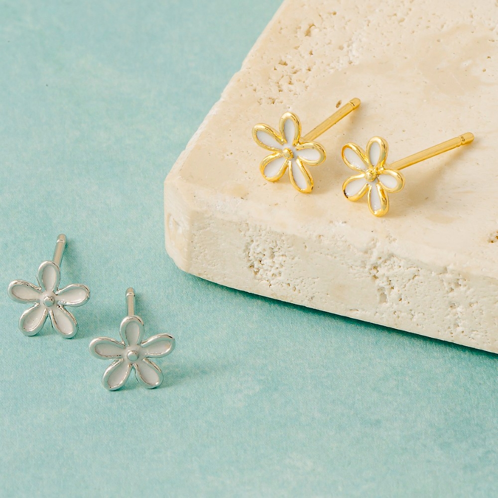 • Make a statement, this pair of stud earrings exudes a refined mini cubic zirconia enamel flower design. This pair of stud earrings is an effortless way to add some personality to your outfit. Available in G, S. This item is sold in packs of 1.