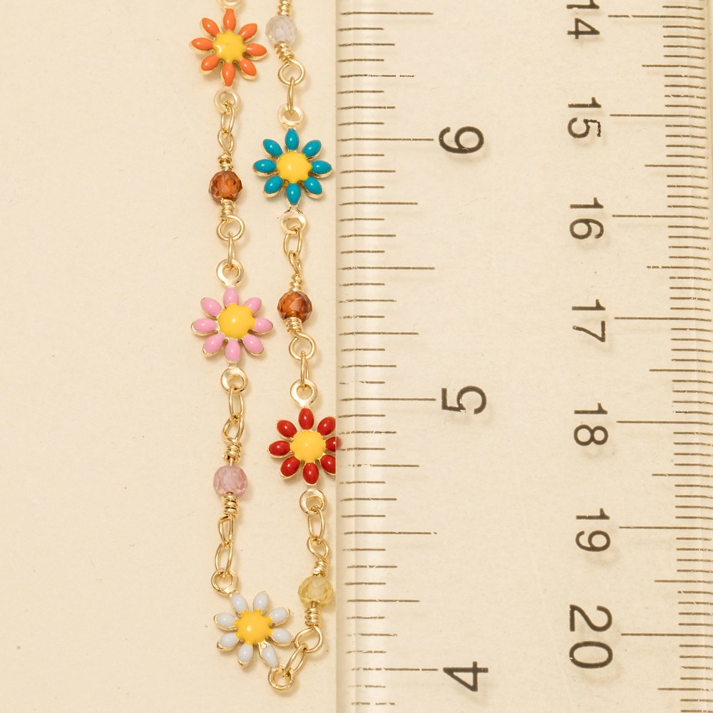 Effortlessly elevate your outfit, this necklace reveals an intricate colorful flower station design. This item is a great way to add some texture and dimension to any outfit. Available in G. This item is sold in packs of 1.