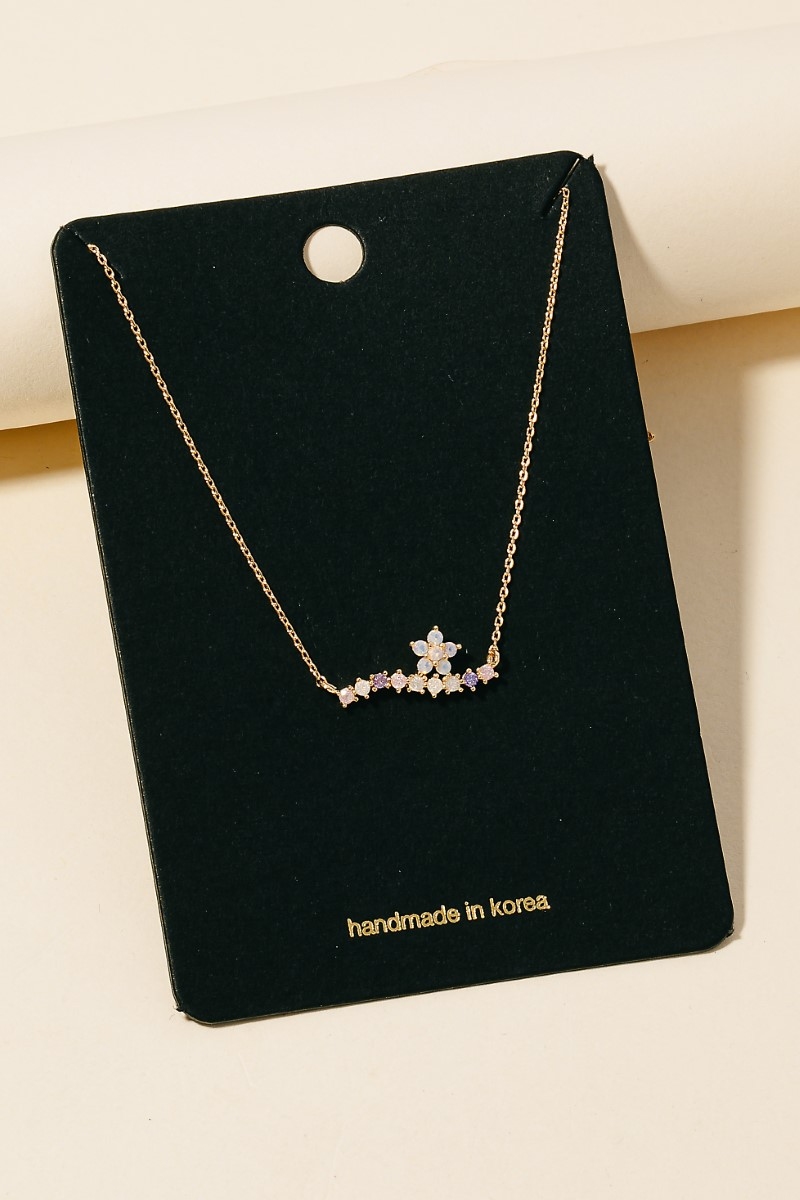 Gold Dipped Cz Stud Flower Pendant Necklace