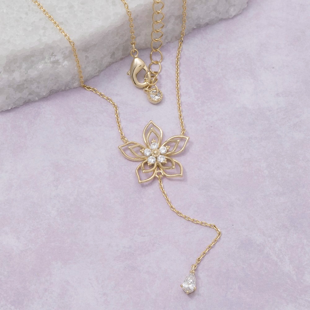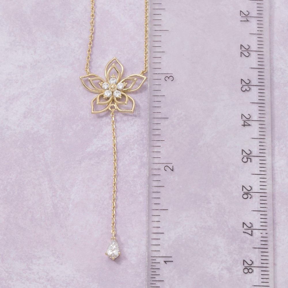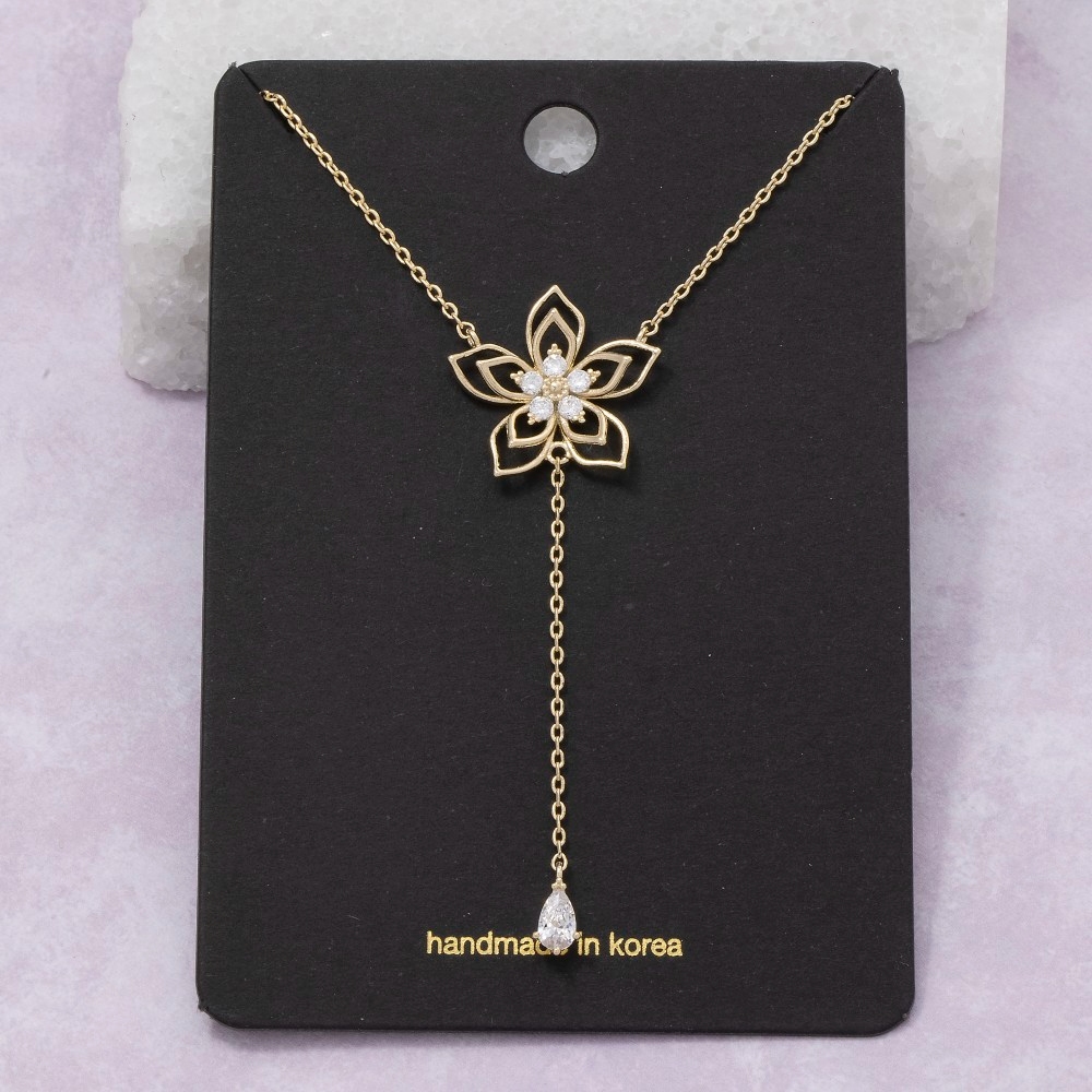 • Sleek and modern, this chain necklace emanates an elegant cz layered flower charm teardrop y design. Add a dash of sophistication to your look with this versatile chain necklace, a must-have for fashion enthusiasts. Available in G. This item is sold in packs of 1.