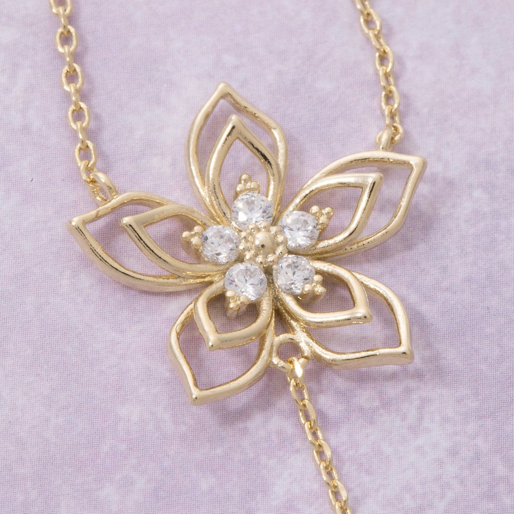Gold Dipped Cz Studded Flower Pendant Necklace