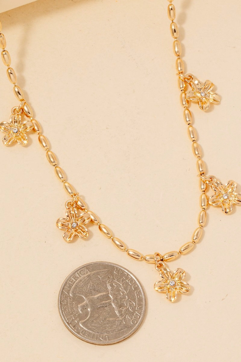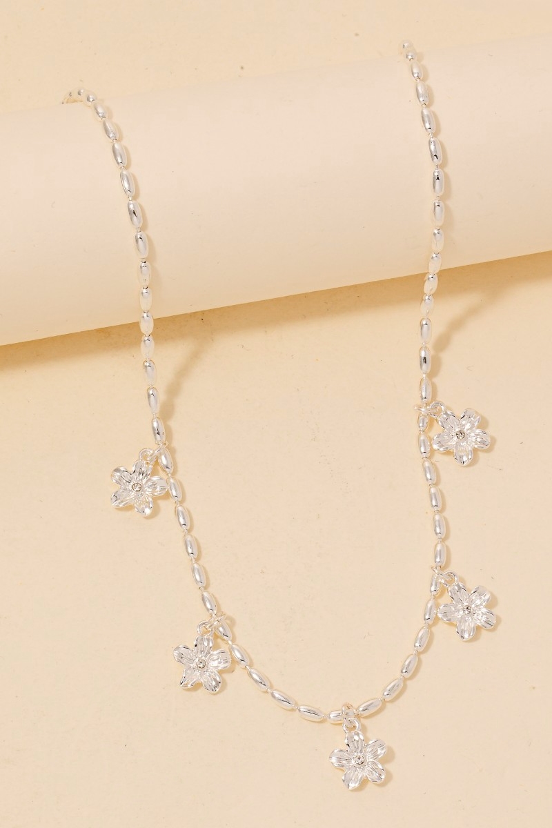 • A modern classic, this necklace highlights a special metallic flower statin charms beaded design. This necklace is an effortless way to add some personality to your outfit. Available in CLRGD and CLRSIL. This item is sold in packs of 1.