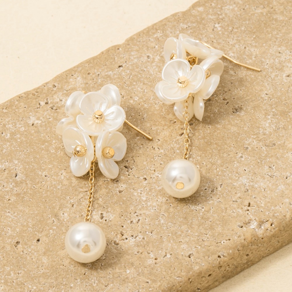 • This pair of dangle earrings is featured in our Floral and Pearl Earrings Collection.