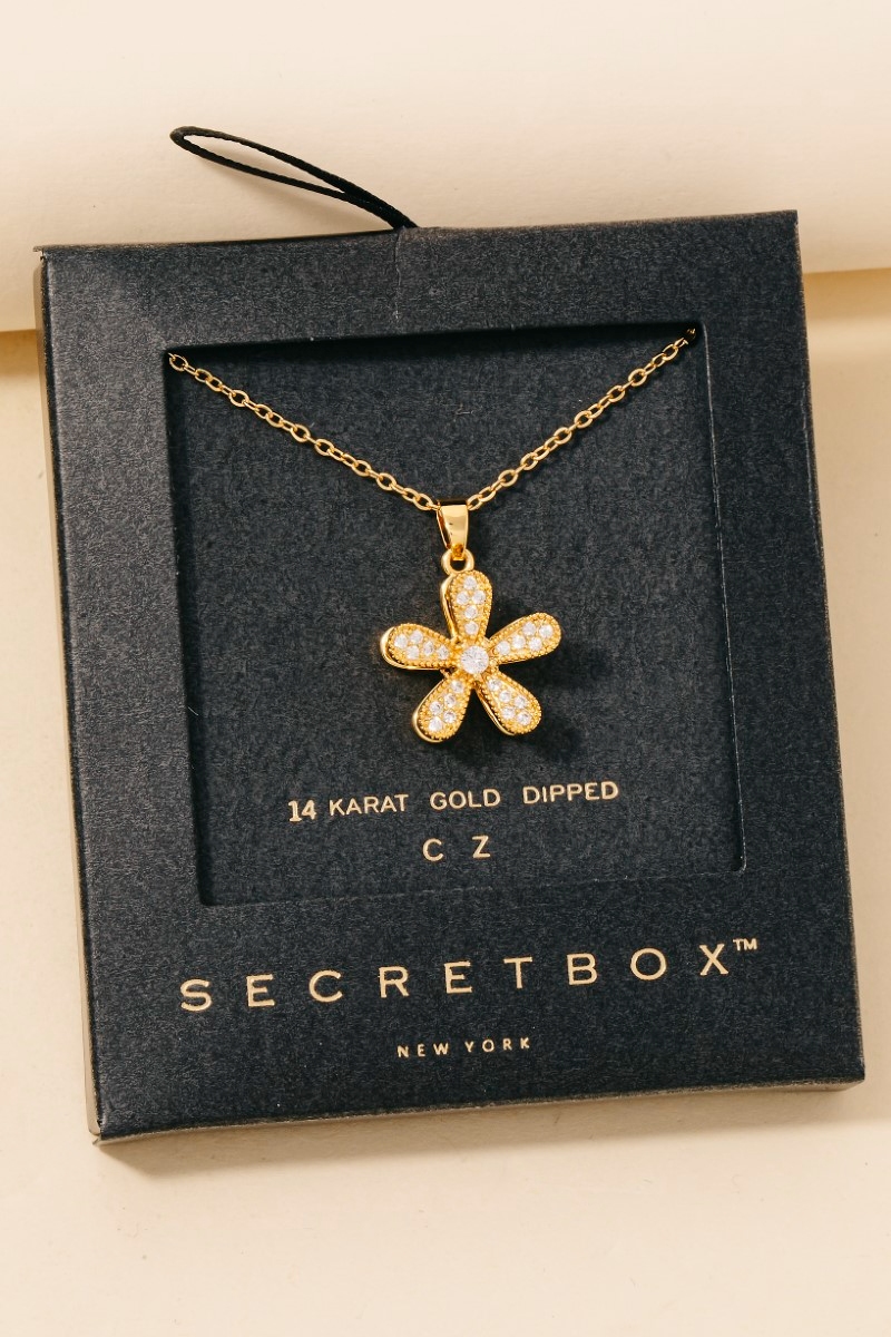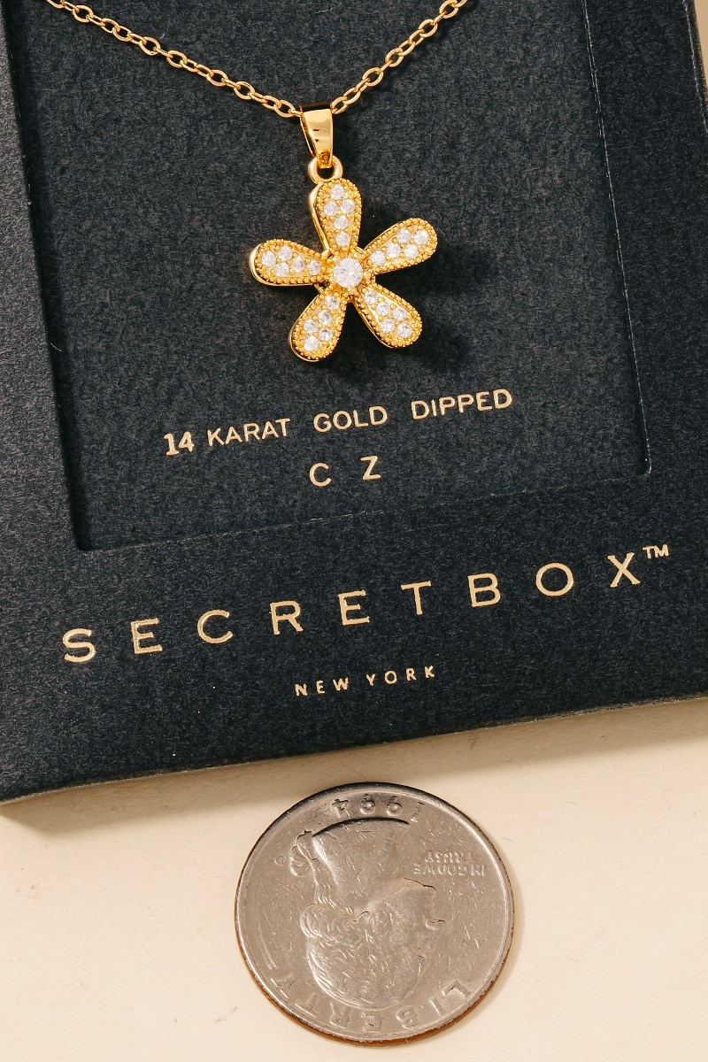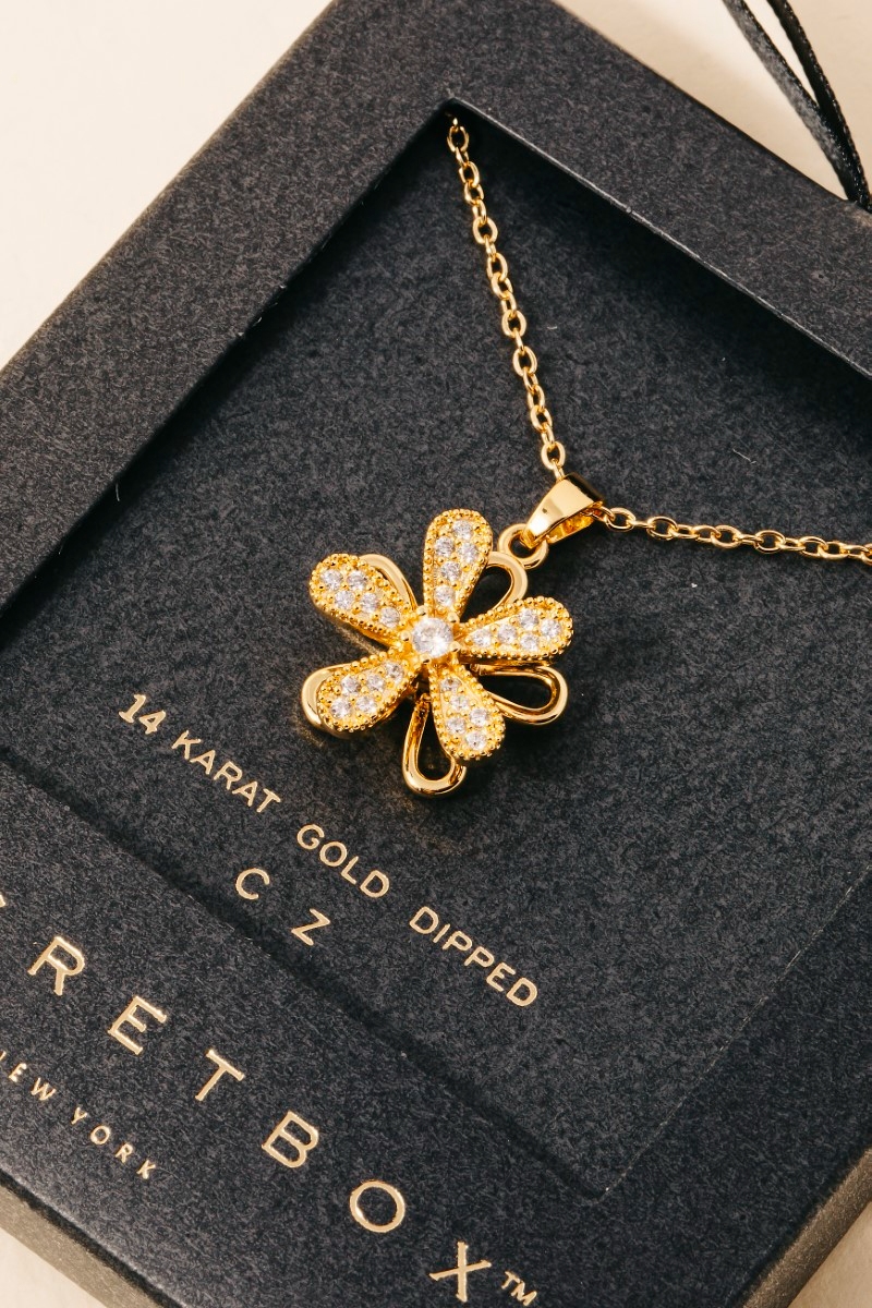 Gold Dipped Cz Stud Flower Pendant Necklace