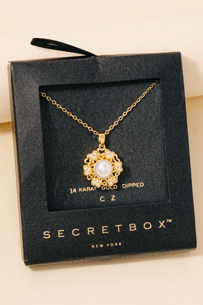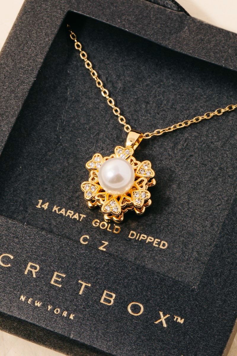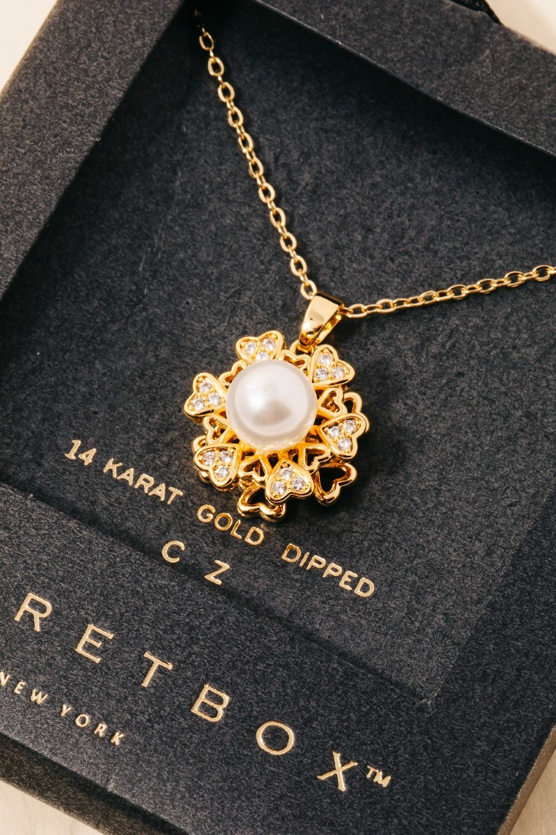 Gold Dipped Pearl And Cz Flower Pendant Necklace