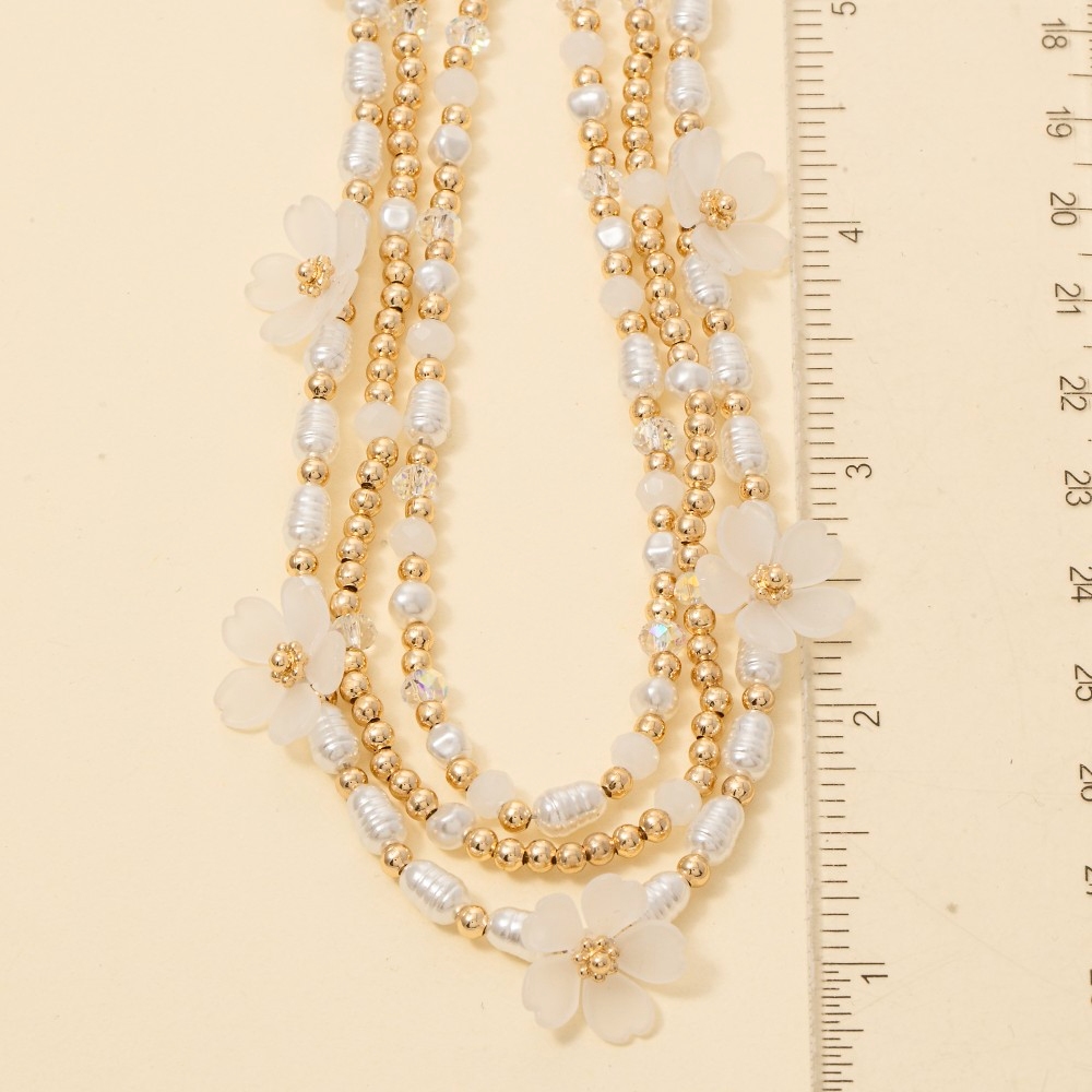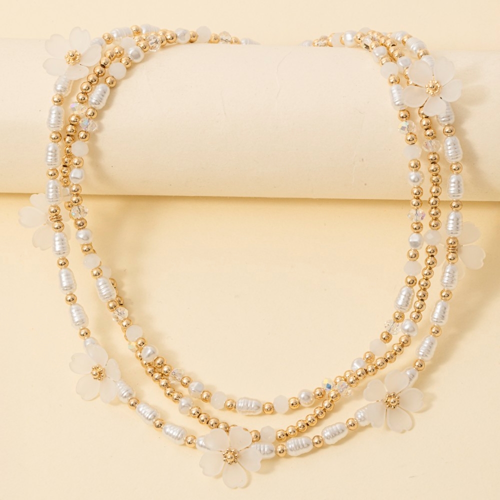 - A piece that will never go out of style, this necklace offers a remarkable station flower charms layered beaded design. Make a lasting impression with this versatile necklace, a subtle yet impactful addition to your fashion repertoire. Available in WHTGD. This item is sold in packs of 1.
