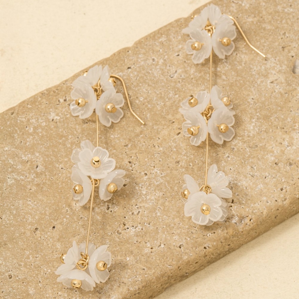 • Elevate your style with something unique and daring, this pair of dangle earrings displays a unique triple flower cluster long design. Achieve a perfect blend of style and sophistication with this versatile pair of dangle earrings, a fashion-forward choice for any occasion. Available in GCM. This item is sold in packs of 1.