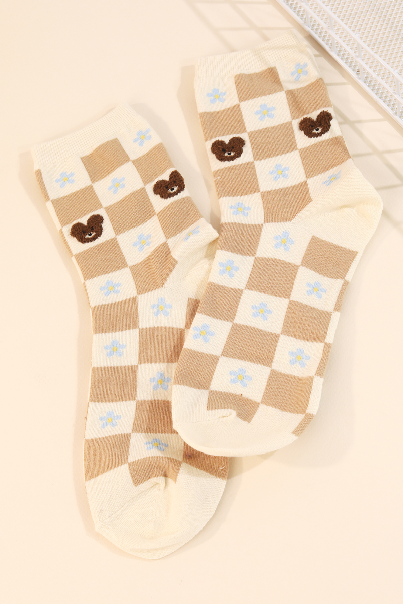 • Elegant, classy, chic and absolutely stunning must have accessory that has a checkered flower teddy bear socks design. Adds a chic touch to any outfit! Available in MULTI. This item is sold in packs of 1.