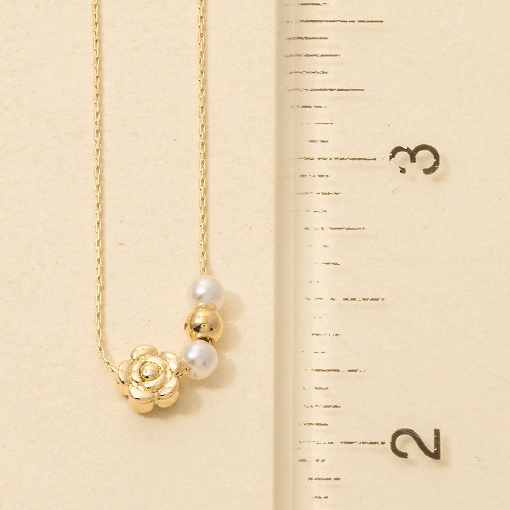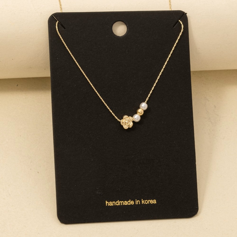 • Upgrade your necklace game, this necklace includes a stunning pearl and flower beads charm design. A must-have necklace that adds a unique flair to any look. Available in G. This item is sold in packs of 1.