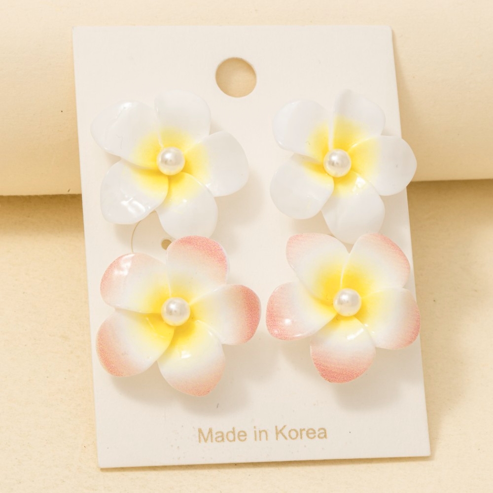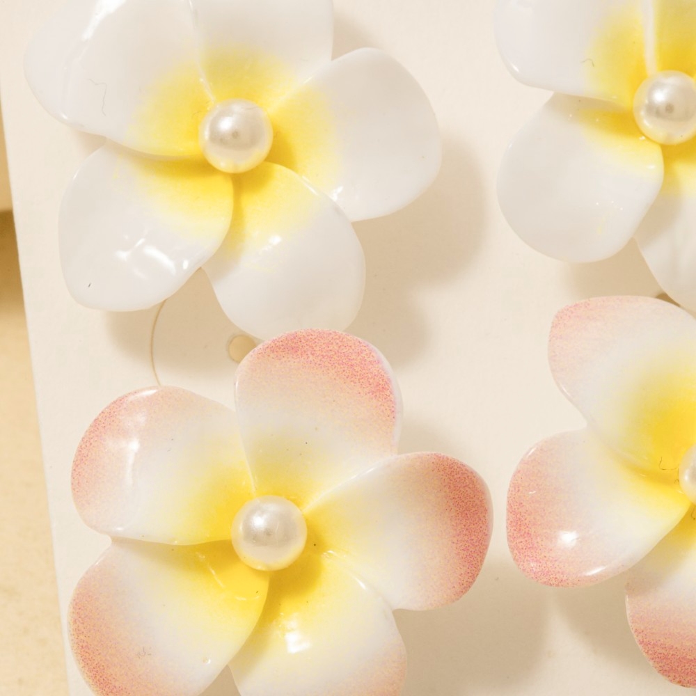 This piece is designed to make a statement, this pair of stud earrings contains a special pearl studded acrylic flower design. This item is perfect for adding some color and vibrancy to any outfit. This item is sold in packs of 1.