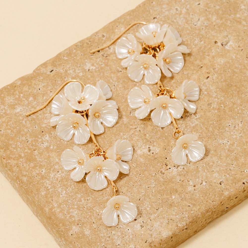 Tiered Colorful Acrylic Flower Petals Dangle Earrings
