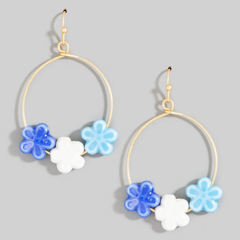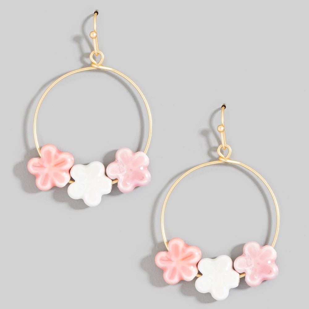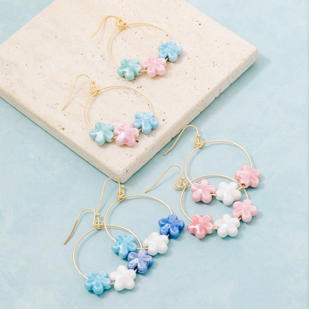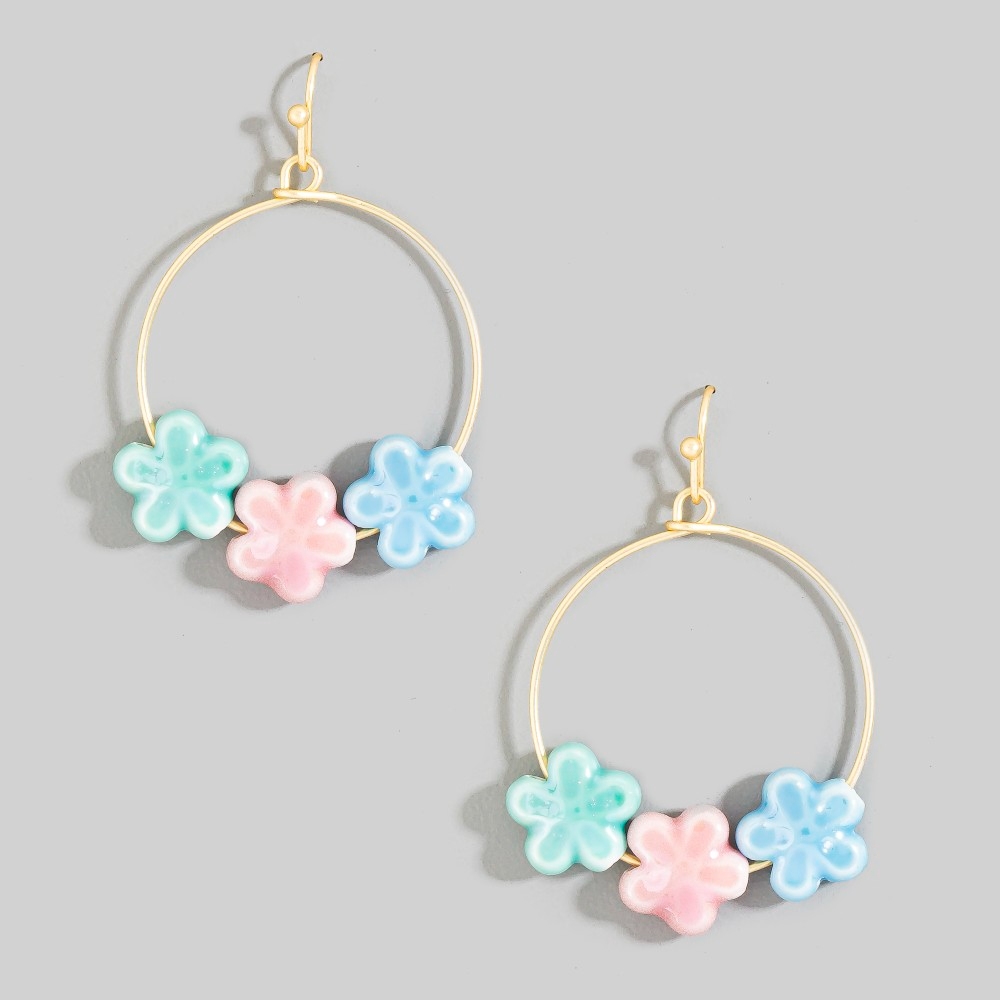 • Chic, sophisticated, and always in style, this pair of drop earrings adds a distinctive resin flower hoop design. Infuse a hint of luxury into your daily attire with this versatile pair of drop earrings, a must-have for those who appreciate timeless elegance. Available in BL, MU, PK. This item is sold in packs of 1.