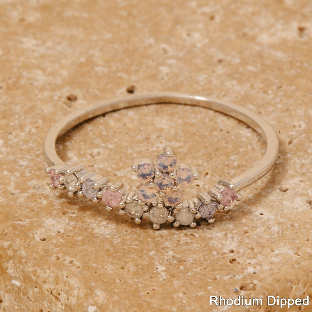 Gold Dipped Cz Floral Ring