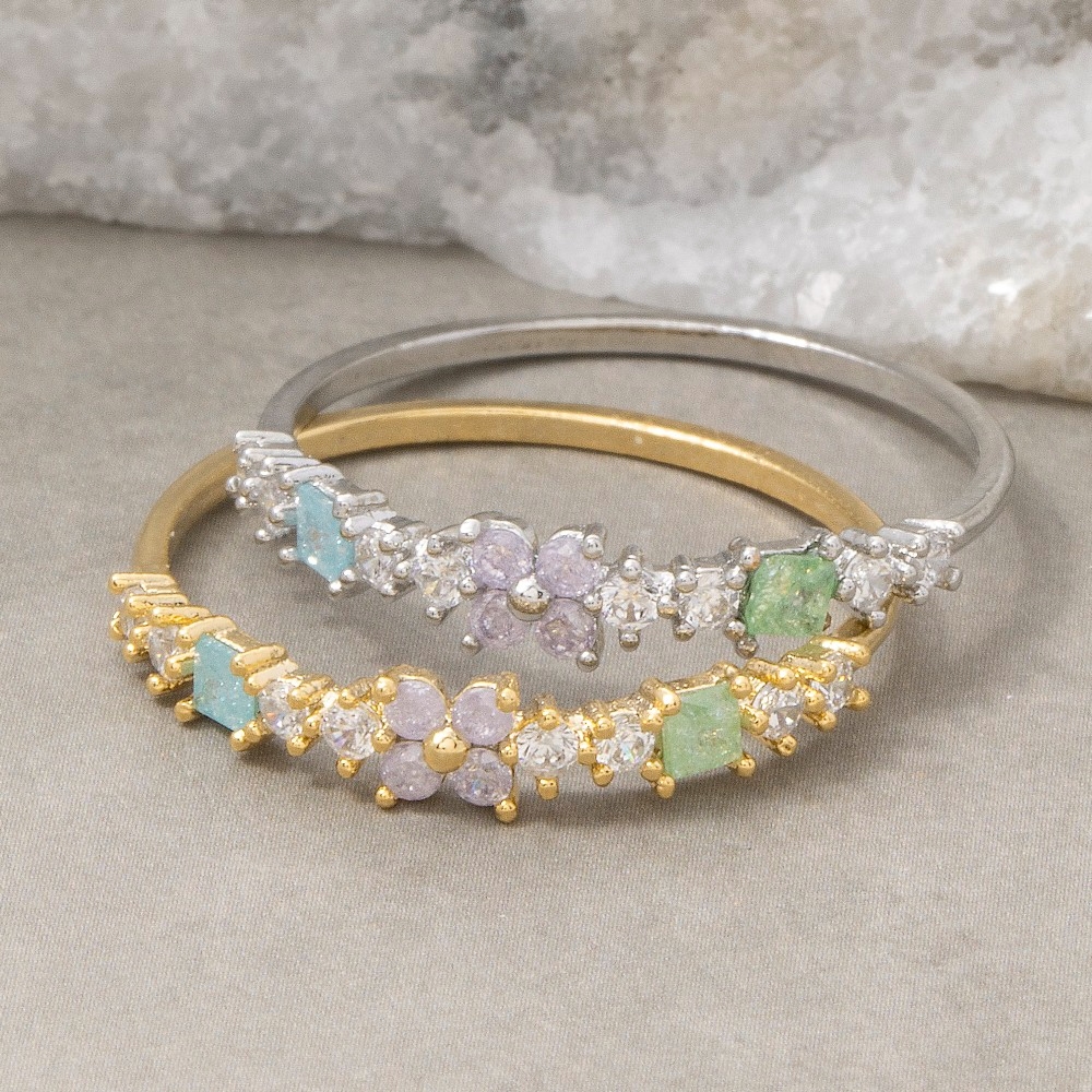 • Upgrade your ring game, this ring reveals an intricate cz flower studded delicate design. Take your style to the next level by incorporating this versatile ring, a key element in achieving a polished look. Available in G. This item is sold in packs of 1.