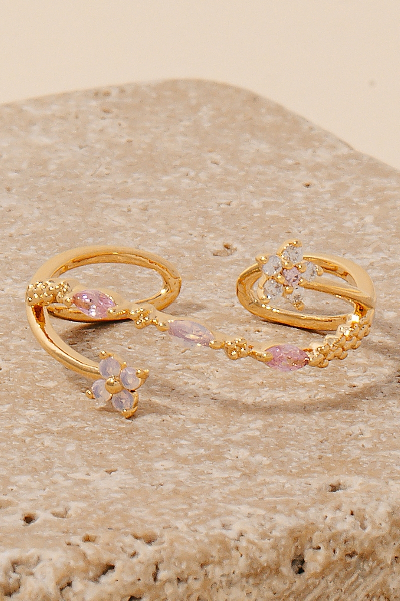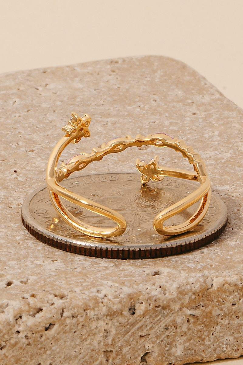 This ring displays a fashionable cz flowers wavy layered open band style. Discover the perfect balance of subtlety and flair as this ring effortlessly completes your look.