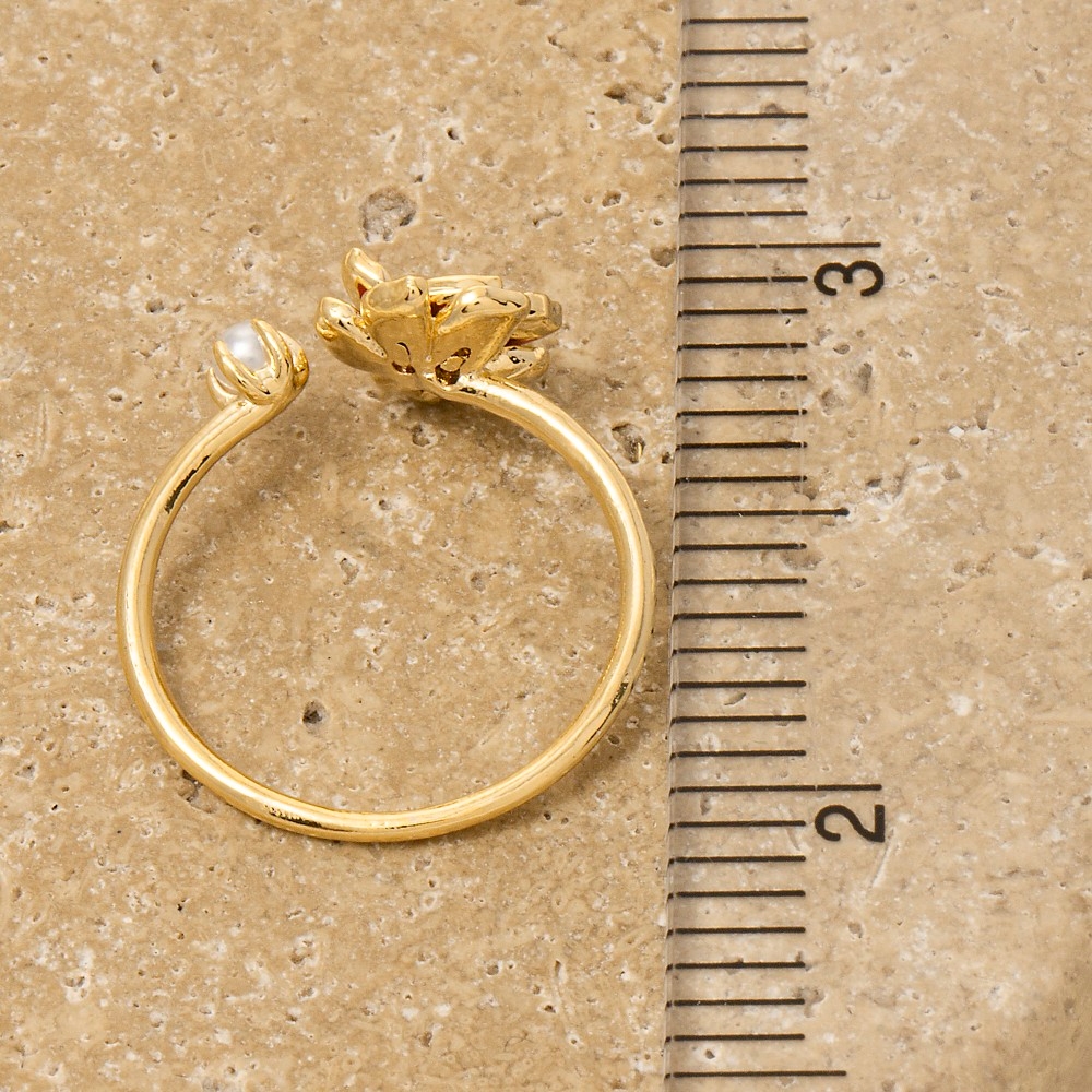 Gold Dipped Cz Flower Leaf Open Ring