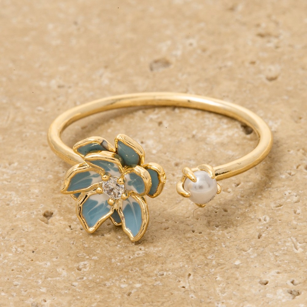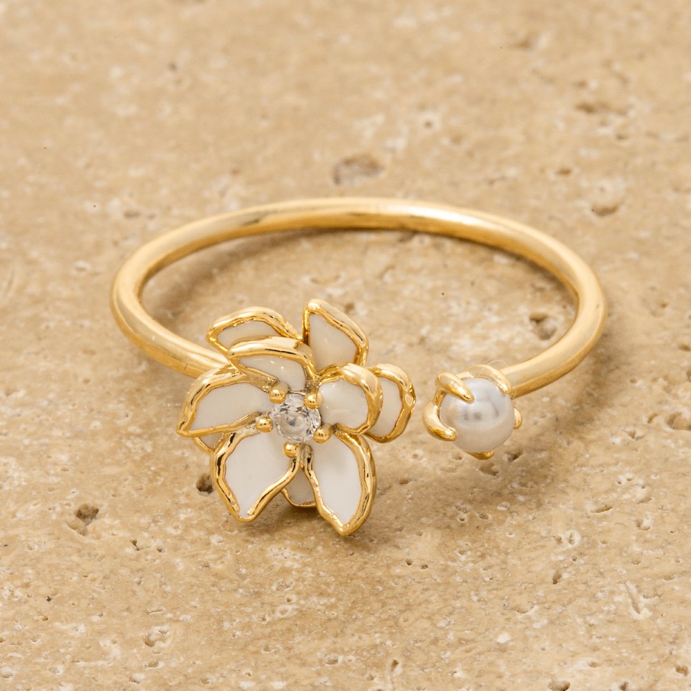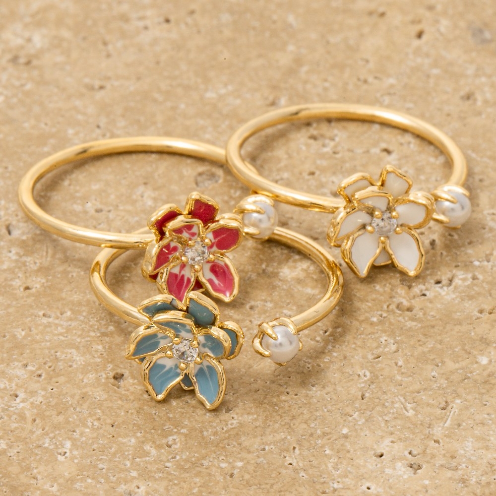 • An instant wardrobe staple, this ring features a distinct enamel flower cubic zirconia pearl open design. This item is the perfect way to add some texture and interest to any outfit. Available in GDBLE, GDHPK, GDWHT. This item is sold in packs of 1.