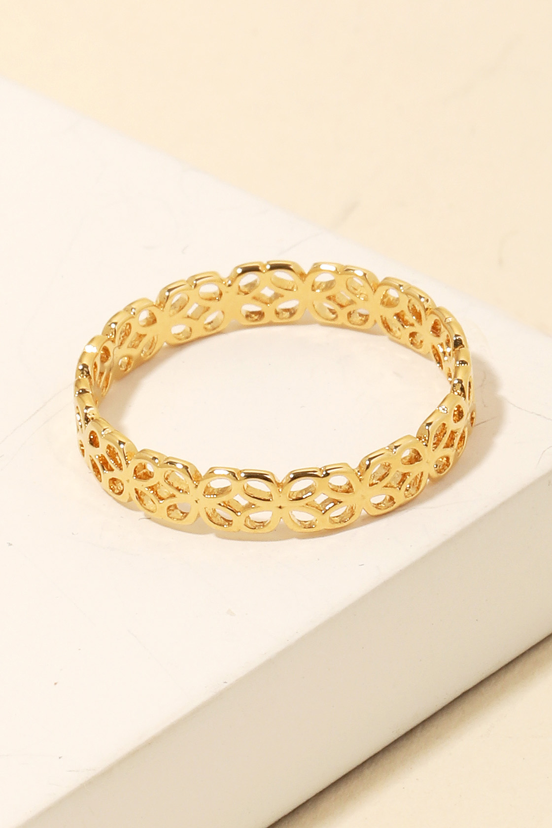 • Add a touch of elegance and glamour to your look, this Ring possesses a fine floral band metallic ring design. It also includes a ring size 6.75. Perfect for dressing up or down, this versatile accessory adds a touch of sophistication to any look. Available in G and S. This item is sold in packs of 1.