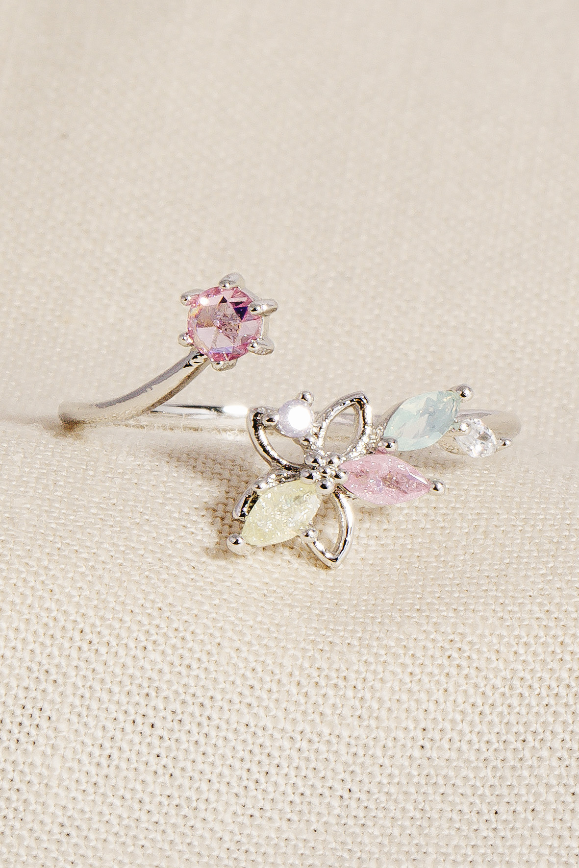 Gold Dipped Cz Moon Star And Butterfly Ring
