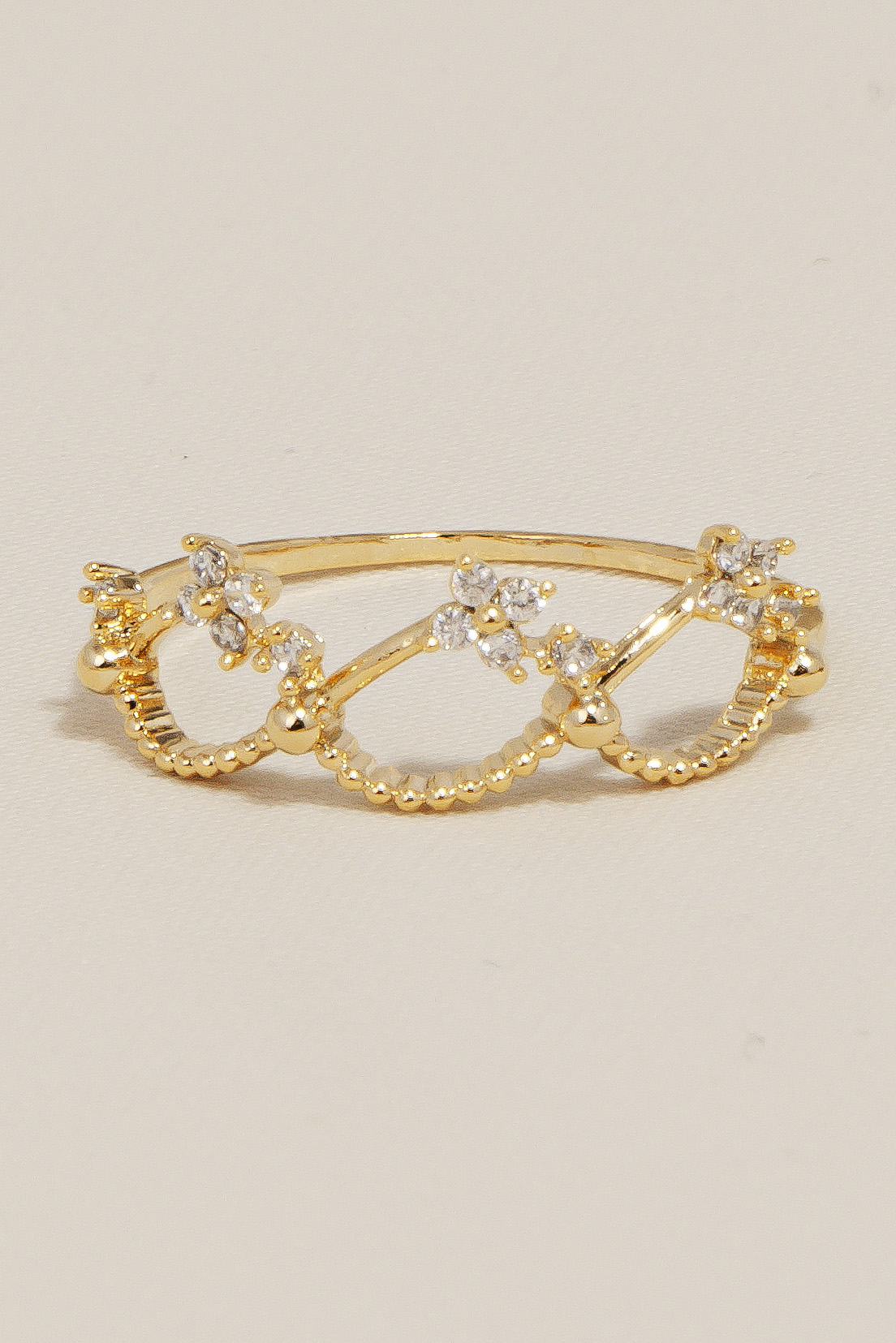 Gold Dipped Cz Floral Pattern Ring