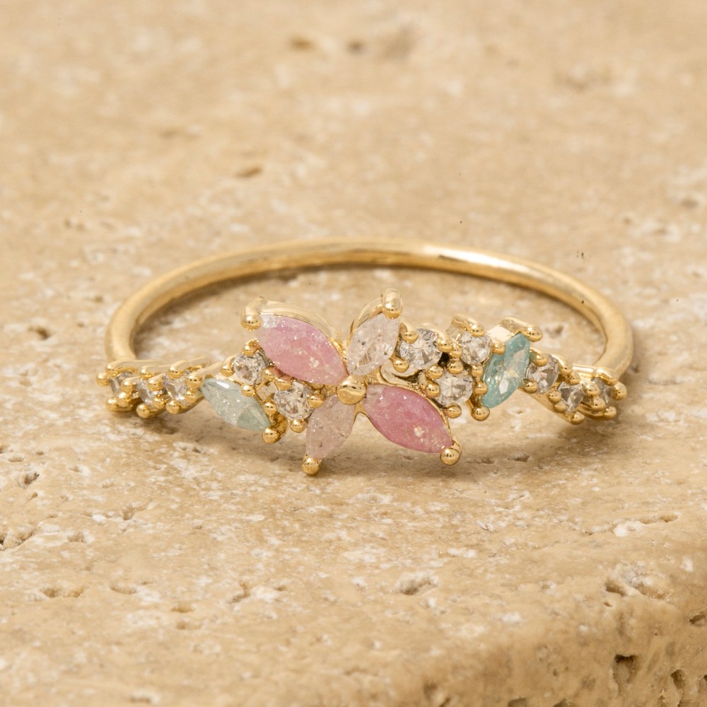 Gold Dipped Cz Floral Ring