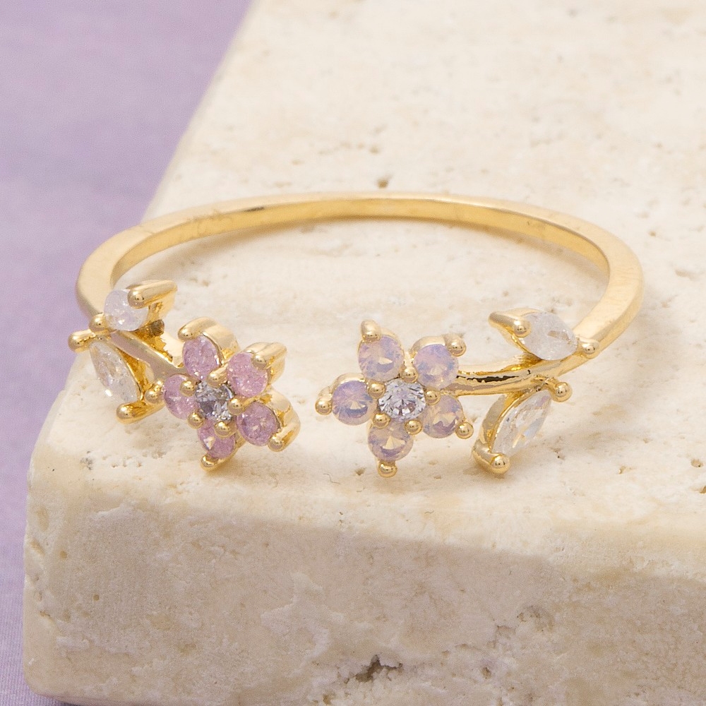Gold Dipped Cz Floral Ring