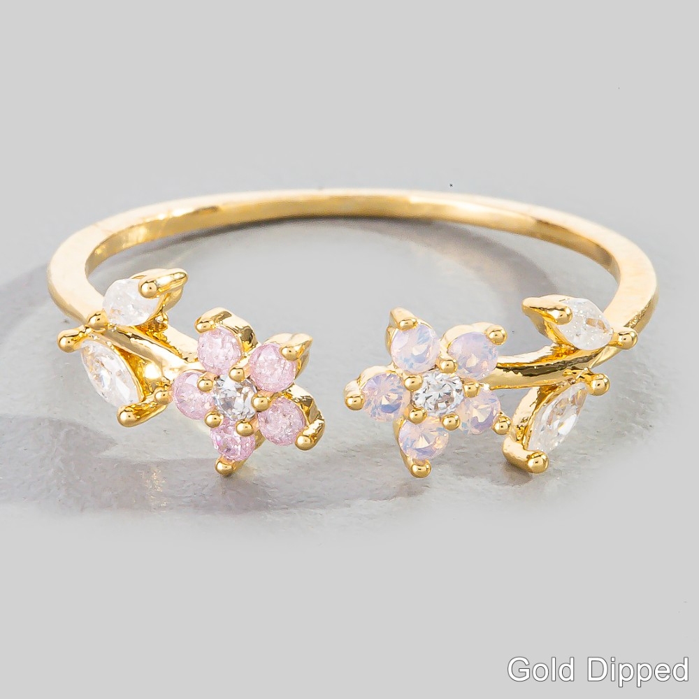 Gold Dipped Cz Flower Leaf Open Ring