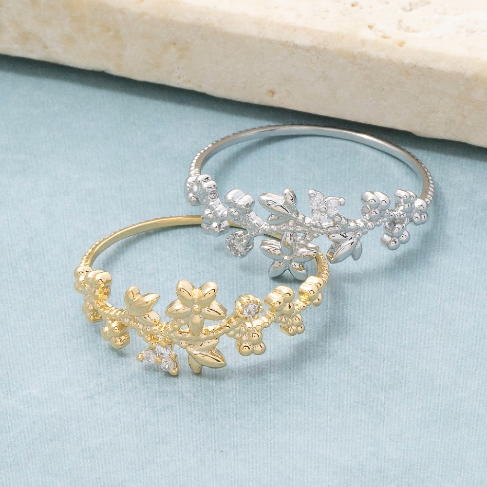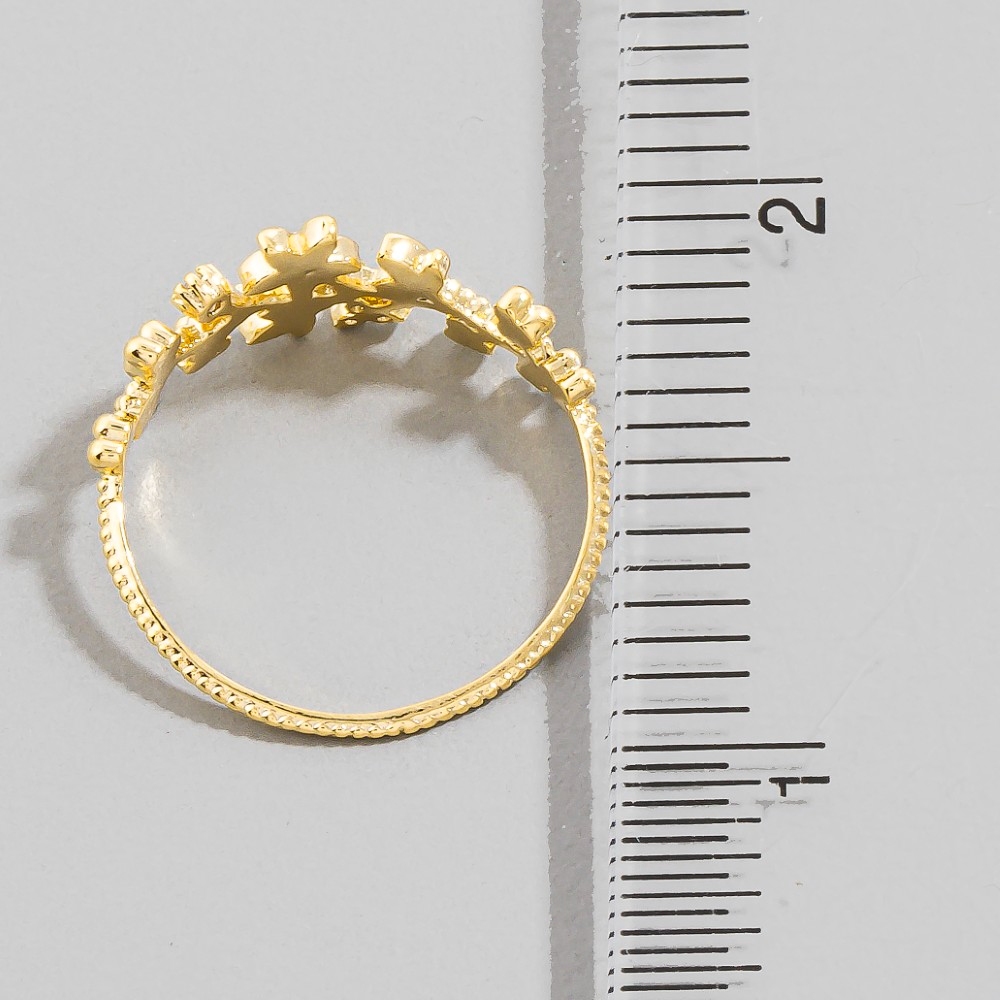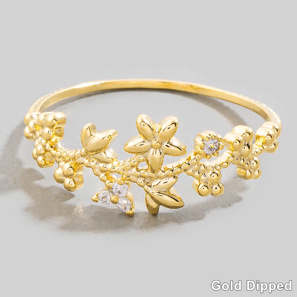- Stay ahead of the fashion curve, this ring offers a remarkable gold dipped cubic zirconia floral star design. The perfect way to elevate any outfit, this ring adds a touch of elegance and style. This item is sold in packs of 1.