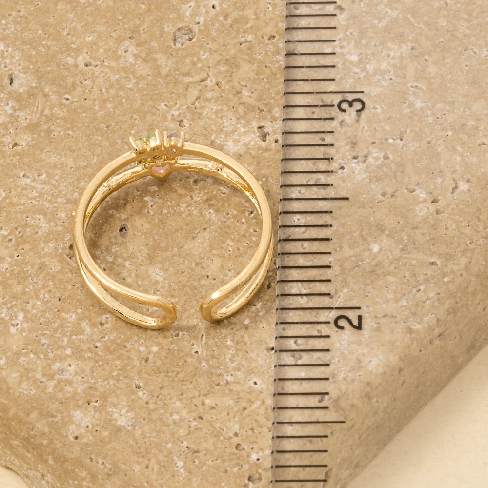 • Elevate any look, this ring reveals an intricate gold dipped cubic zirconia heart and flower design. Unlock endless styling possibilities with this versatile ring, creating a signature look that speaks volumes. Available in G. This item is sold in packs of 1.