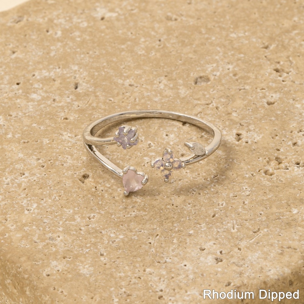 Gold Dipped Cz Moon Star And Butterfly Ring