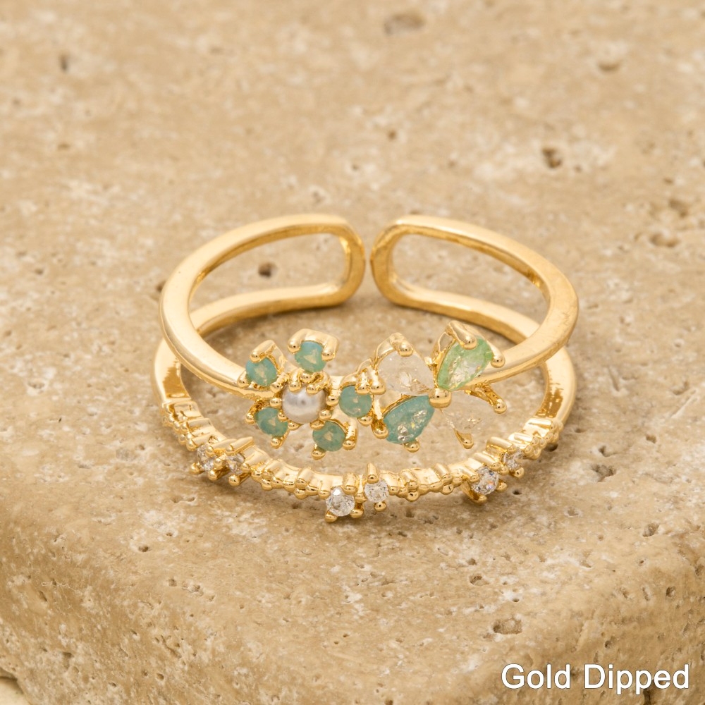 Gold Dipped Cz Cluster & Butterfly Double Band Ring