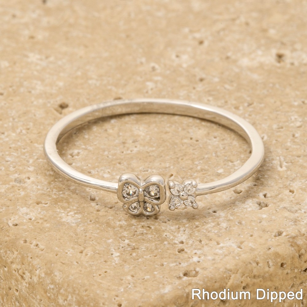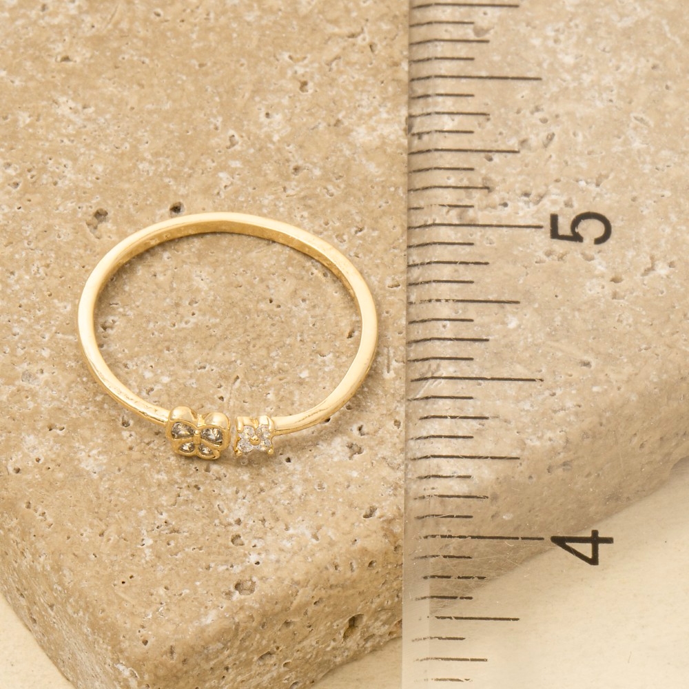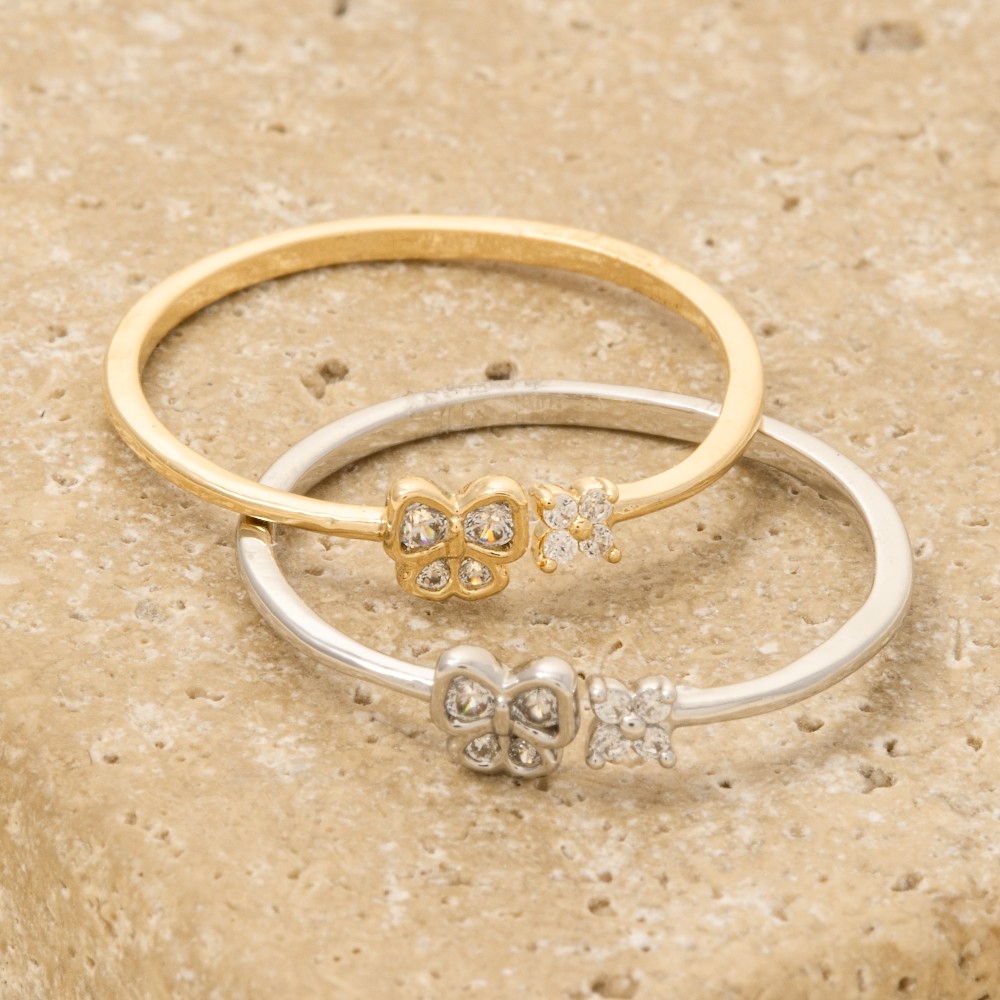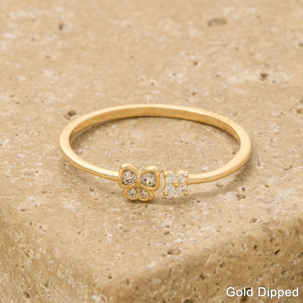• An instant wardrobe staple, this ring exudes a refined gold dipped pave butterfly flower design. A must-have ring that effortlessly enhances your style, no matter the occasion. Available in G, S. This item is sold in packs of 1.
