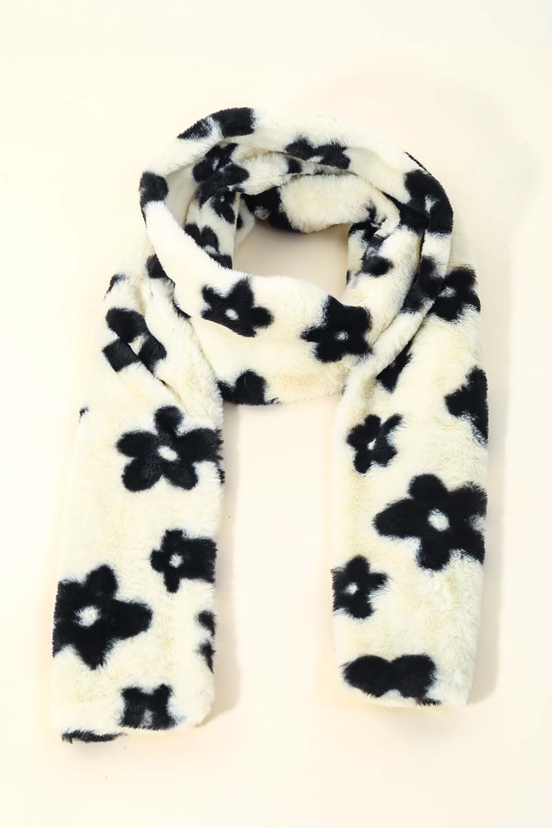 Flower Print Fur Scarf
