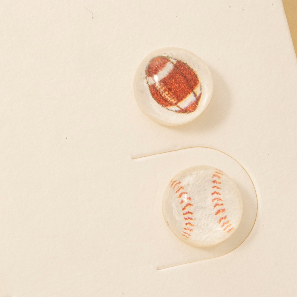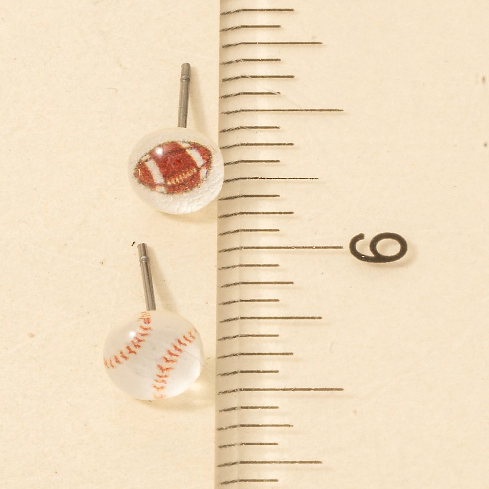 - A stunning addition to any jewelry collection, this pair of stud earrings comes with a special football and baseball acrylic set design. This pair of stud earrings is an effortless way to add some personality to your outfit. This item is sold in packs of 1.