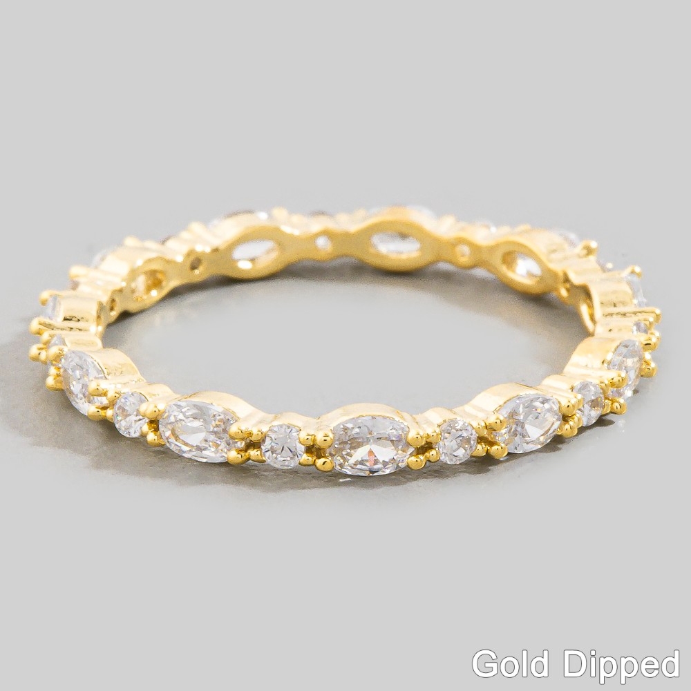 The epitome of sophistication and style, this ring carries a charming gold dipped cubic zirconia eternity band design. A versatile ring that's perfect for any occasion, adding a touch of elegance and style to any outfit. Available in G, S. This item is sold in packs of 1.