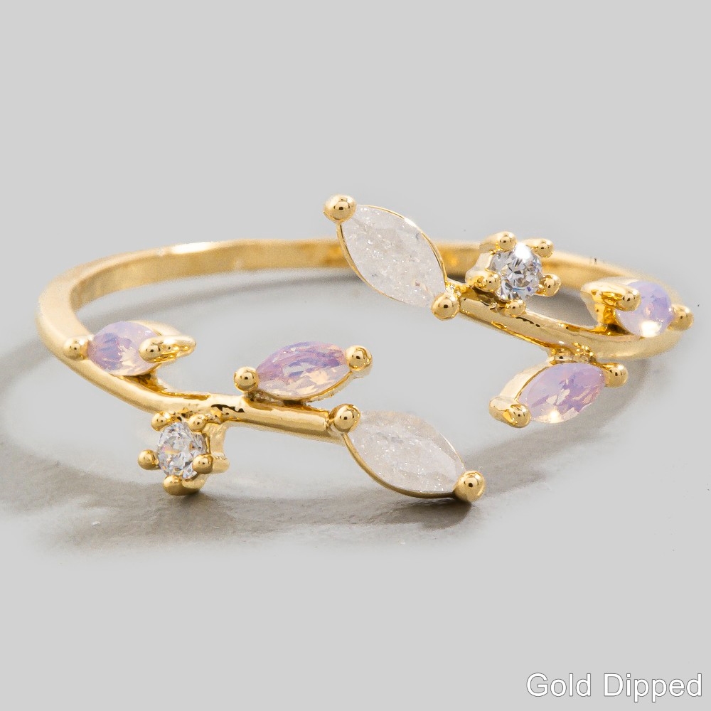 Effortlessly chic and sophisticated, this ring carries a charming gold dipped cubic zirconia leaf wrap open design. This item is perfect for adding some color and vibrancy to any outfit. Available in G. This item is sold in packs of 1.