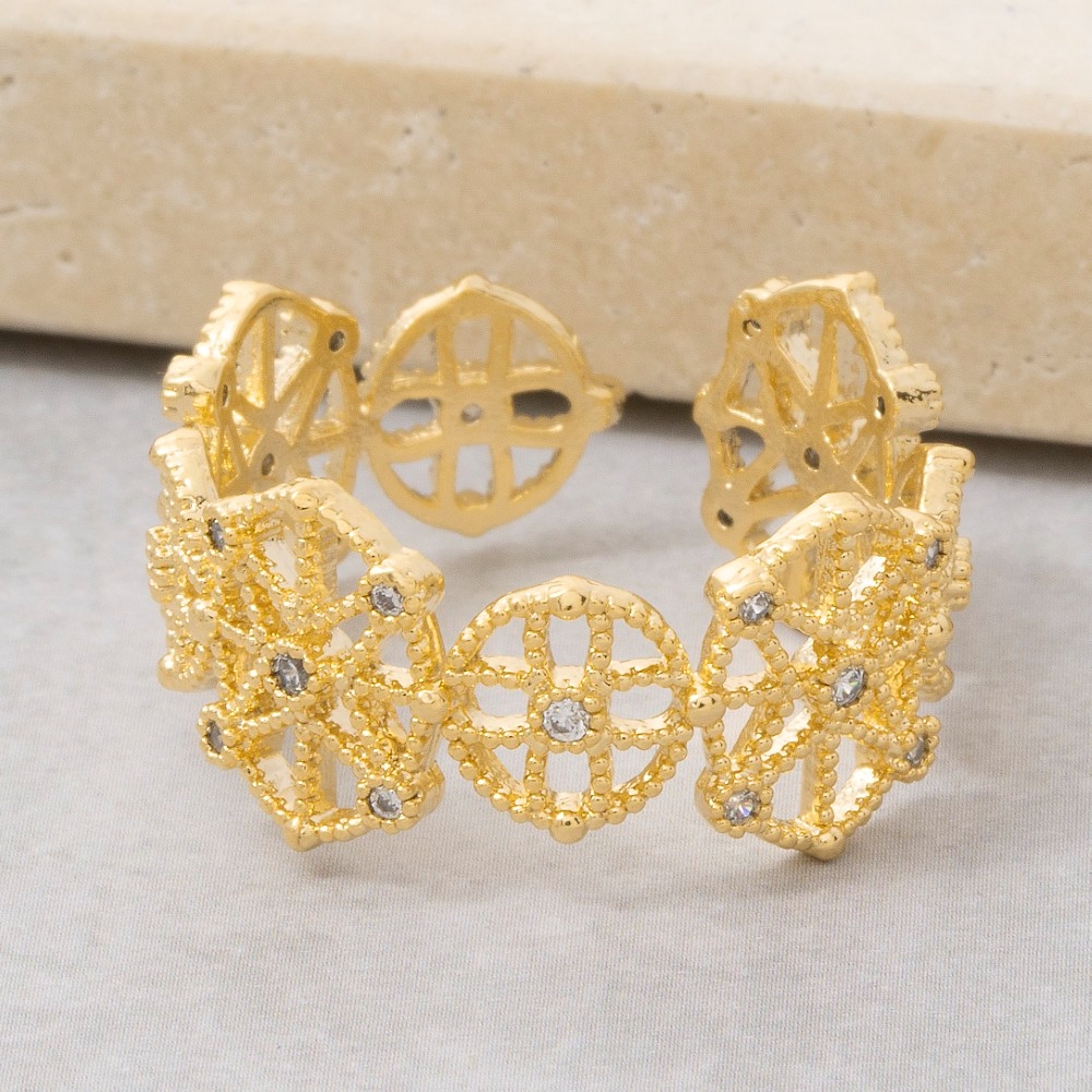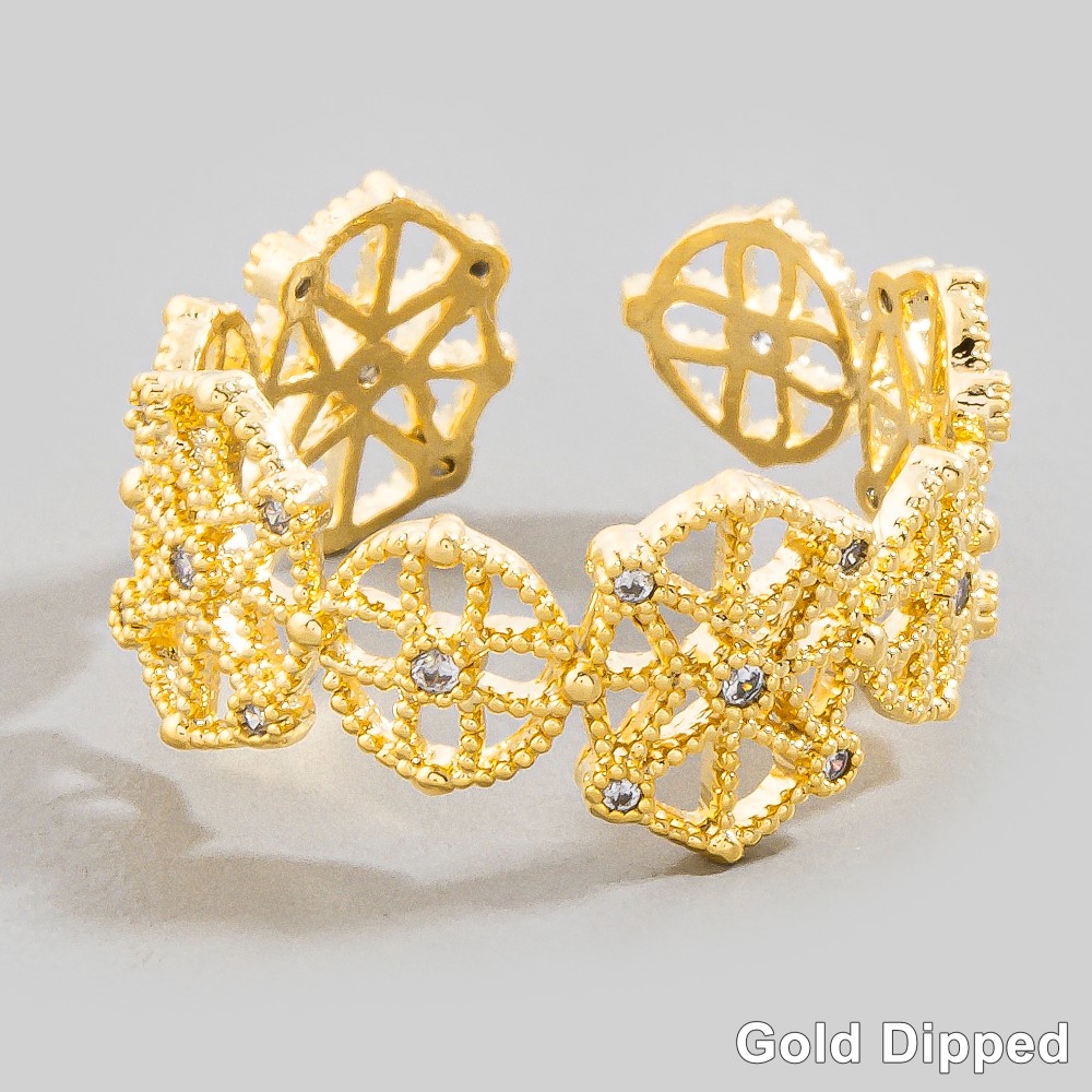 • A timeless piece that will never go out of style, this ring showcases a breathtaking gold dipped cubic zirconia round filigree design. Achieve a perfect balance of style and sophistication with this versatile ring, the ultimate choice for the fashion-savvy individual. This item is sold in packs of 1.