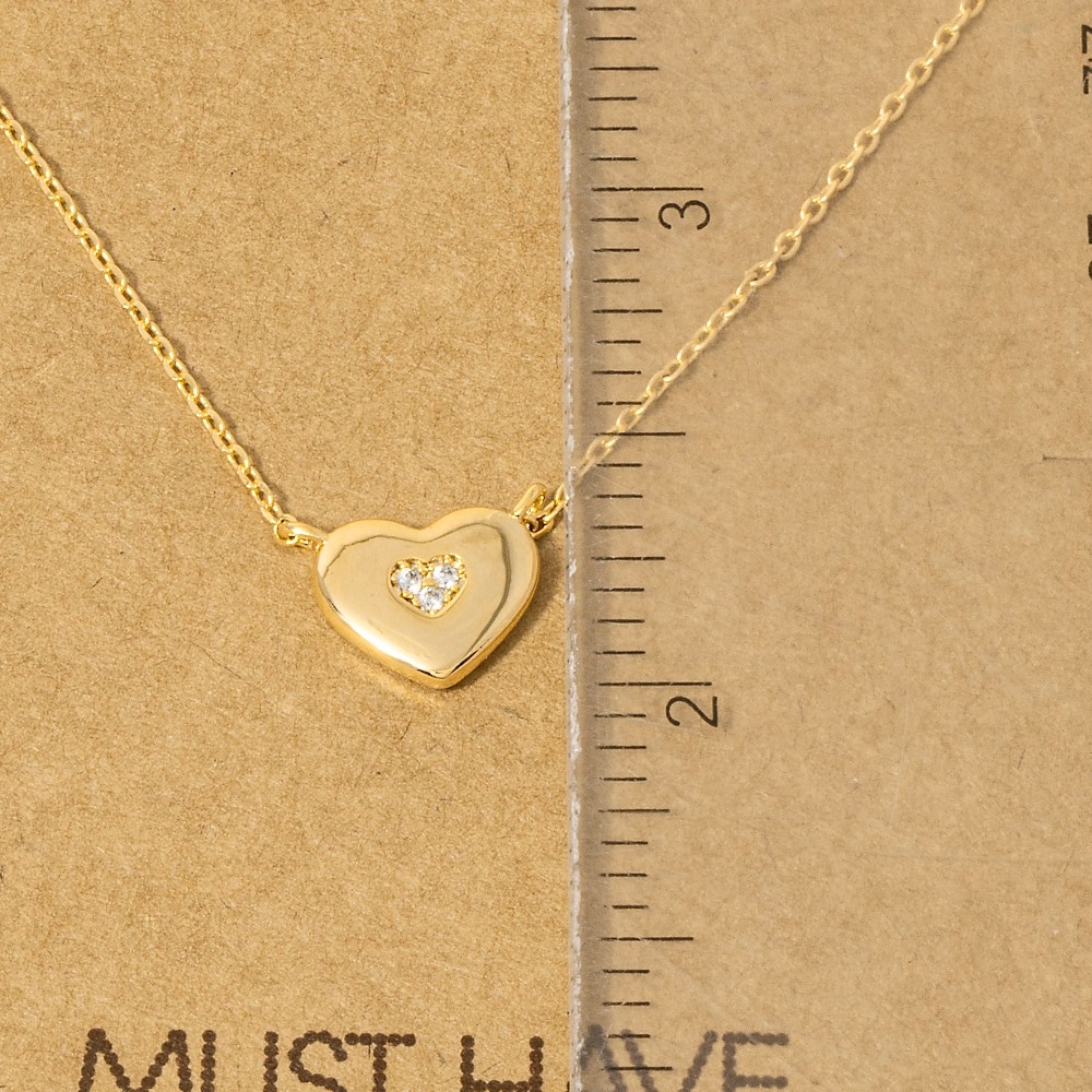 The perfect way to showcase your unique style, this pendant necklace displays a unique gold dipped cubic zirconia studded heart design. Unlock endless styling possibilities with this versatile pendant necklace, creating a signature look that speaks volumes. Available in G, R, S. This item is sold in packs of 1.