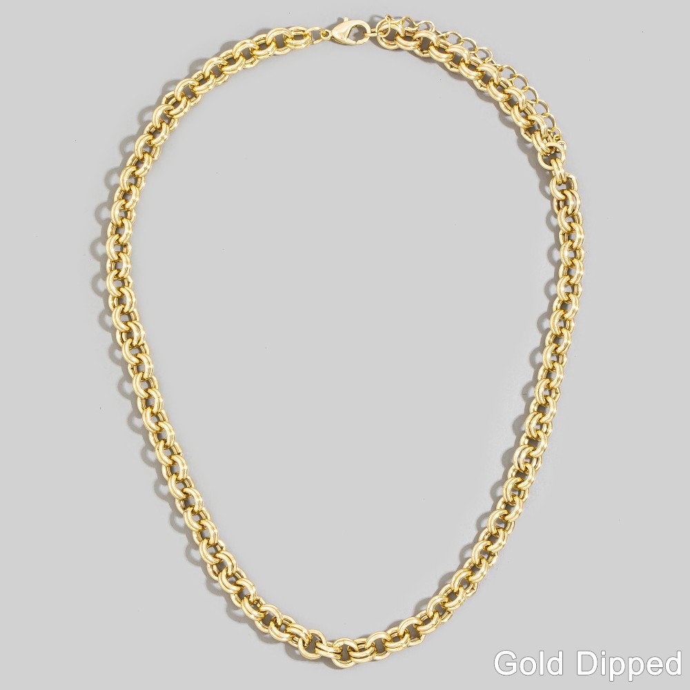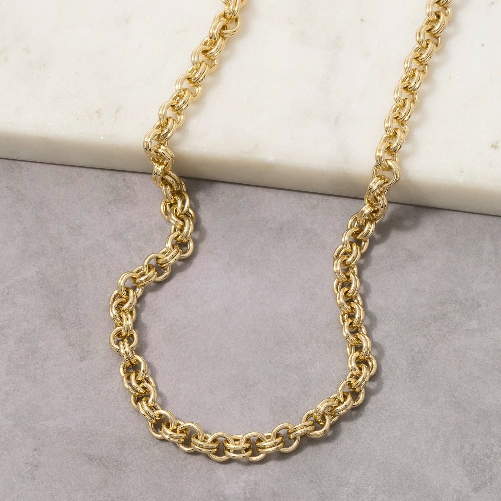 This piece is designed to be both stylish and functional, this chain necklace possesses a fine gold dipped double rolo design. A perfect addition to your wardrobe that effortlessly enhances your style. This item is sold in packs of 1.