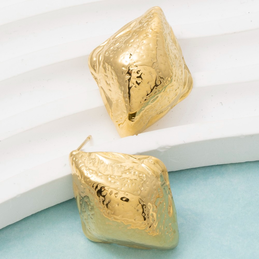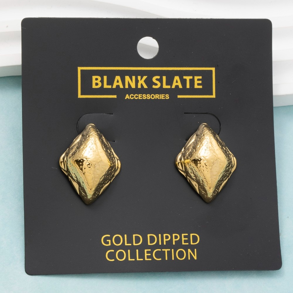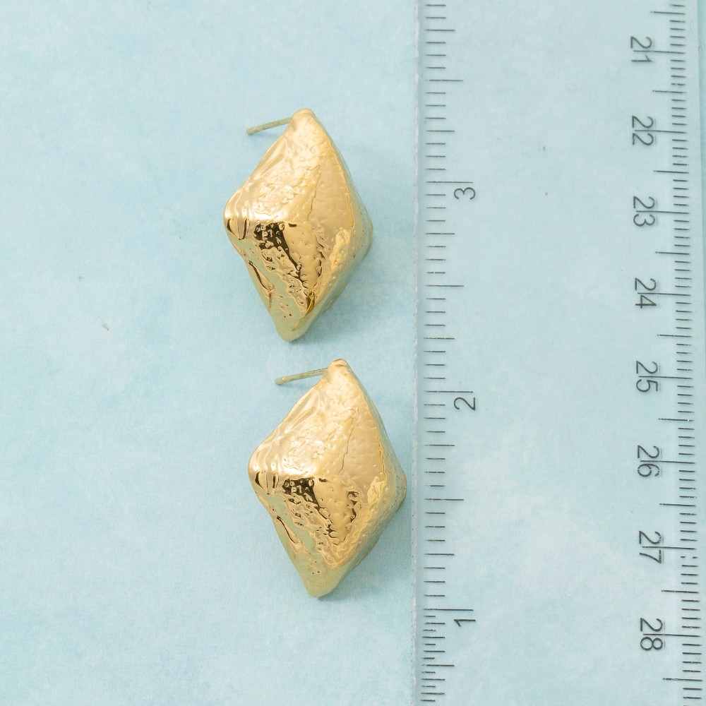 • Uniquely designed and endlessly stylish, this pair of stud earrings possesses a fine gold dipped hammered diamond shape design. Perfect for dressing up your favorite outfit, this pair of stud earrings is a must-have. Available in G. This item is sold in packs of 1.