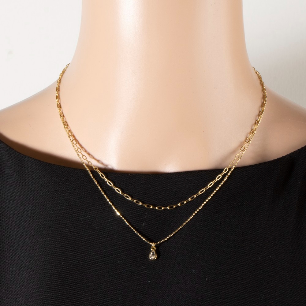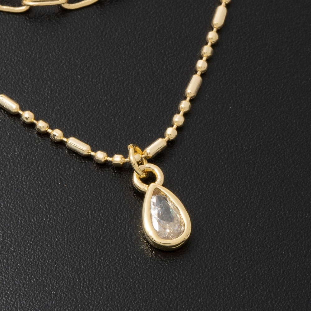 This chain necklace is made with 20% Cubic Zirconia and 80% Brass.