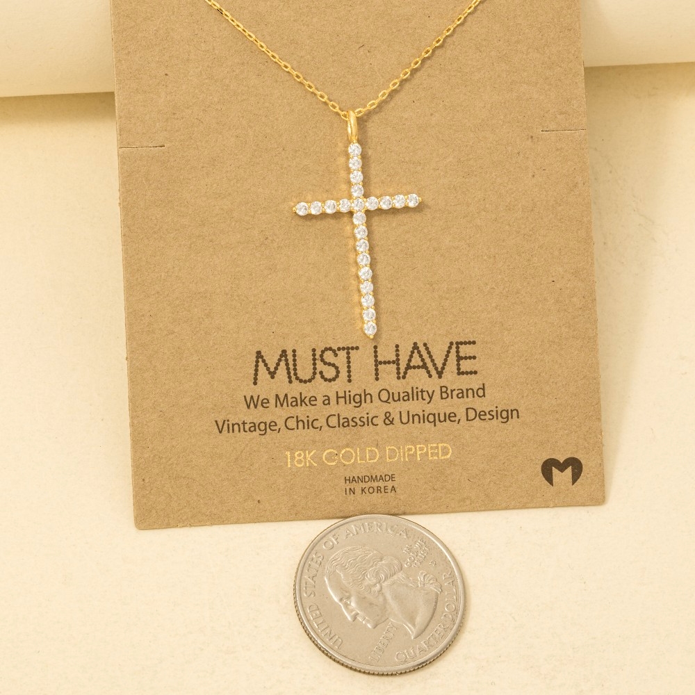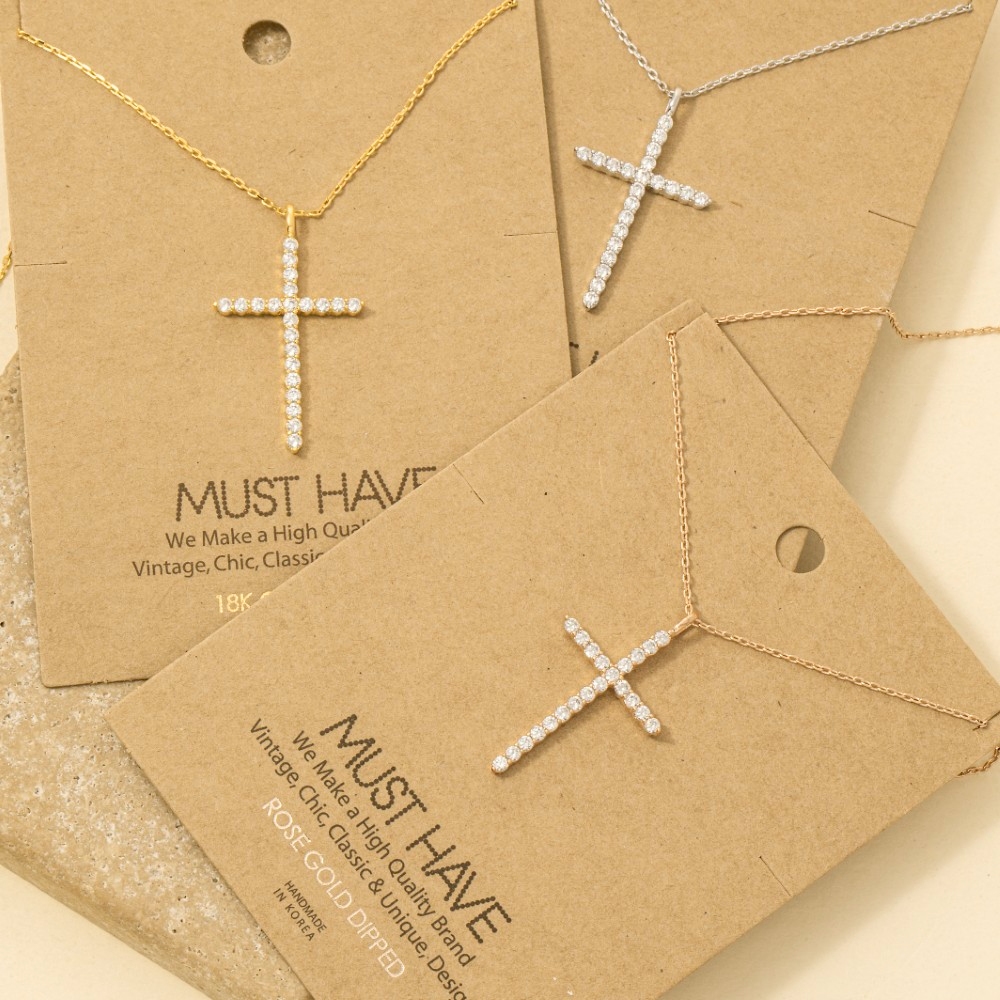 • Elevate your style with something unique and daring, this chain necklace radiates a sleek gold dipped pave cross pendant design. This item is the perfect finishing touch to any outfit, adding a touch of glamour and sophistication. Available in G, S and R. This item is sold in packs of 12.