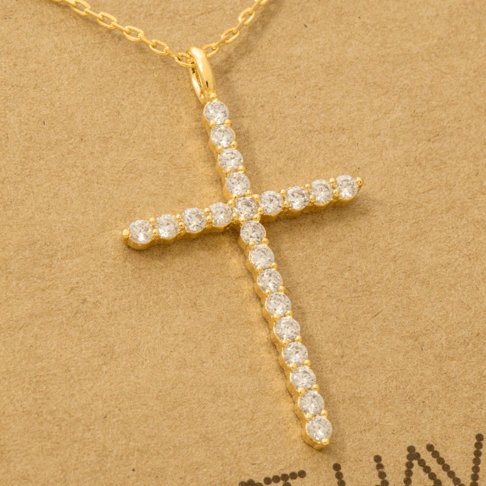Gold Dipped Pave Min Cross Pendant Necklace