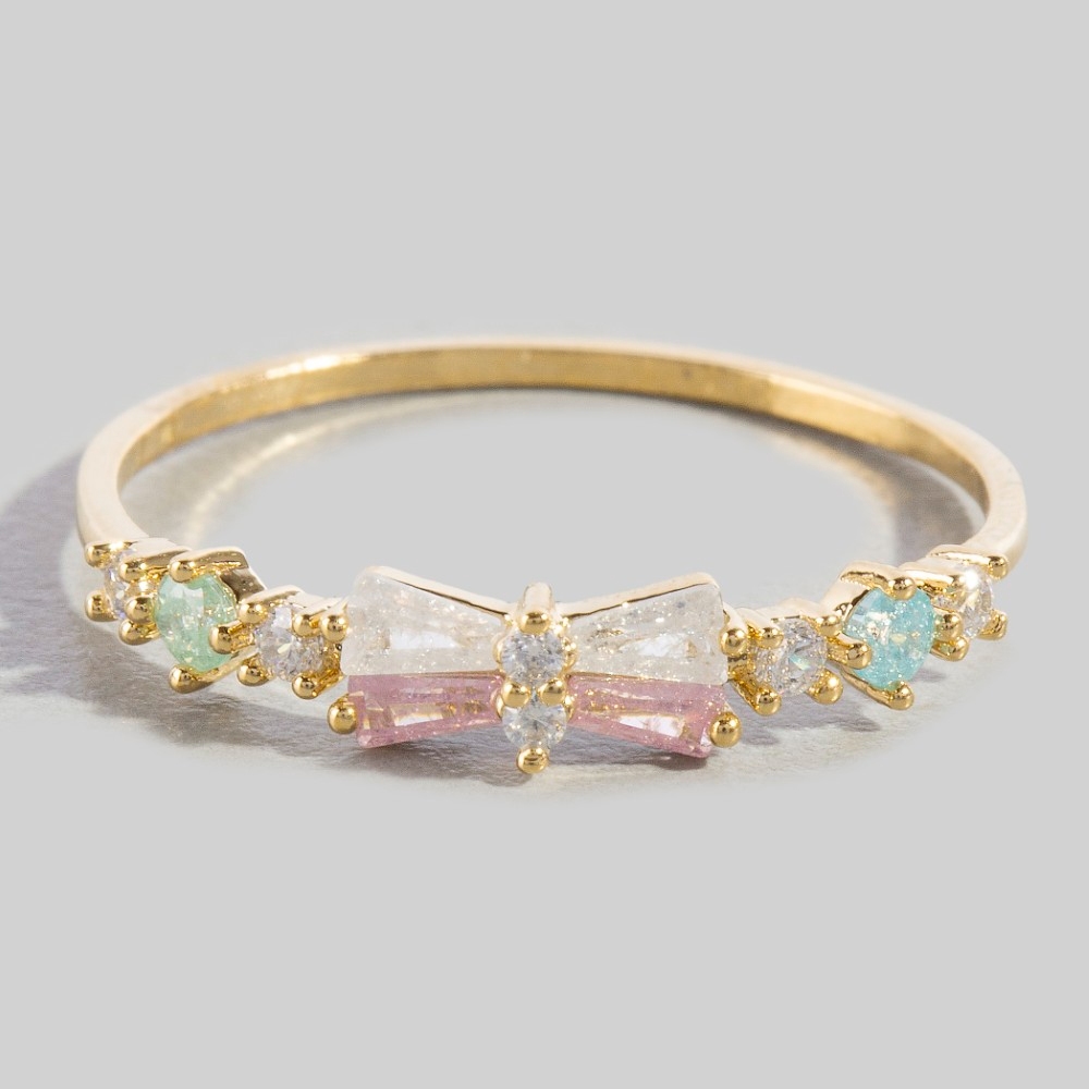A timeless piece that you'll wear for years to come, this ring boasts a magnificent gold dipped cubic zirconia baguette bow band design. This versatile ring adds a touch of elegance to any outfit. Available in G. This item is sold in packs of 1.