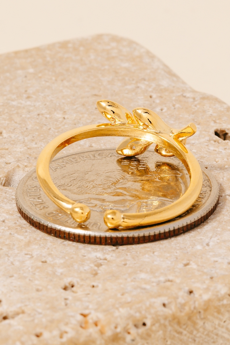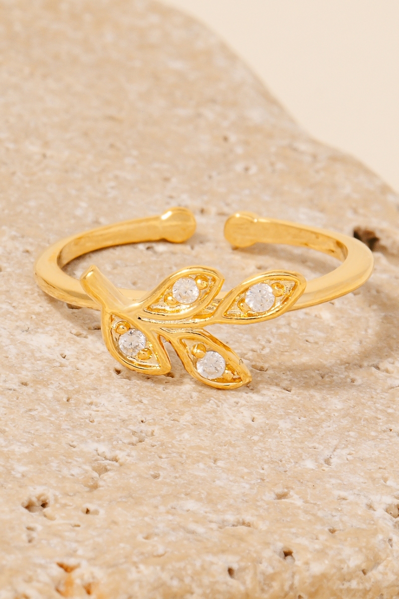 • This piece is a true showstopper, this ring features a distinct gold dipped cubic zirconia leaves open band design. A must-have ring that adds a unique flair to any look. Available in G and S. This item is sold in packs of 1.