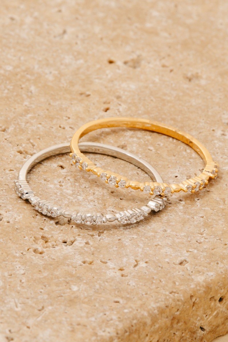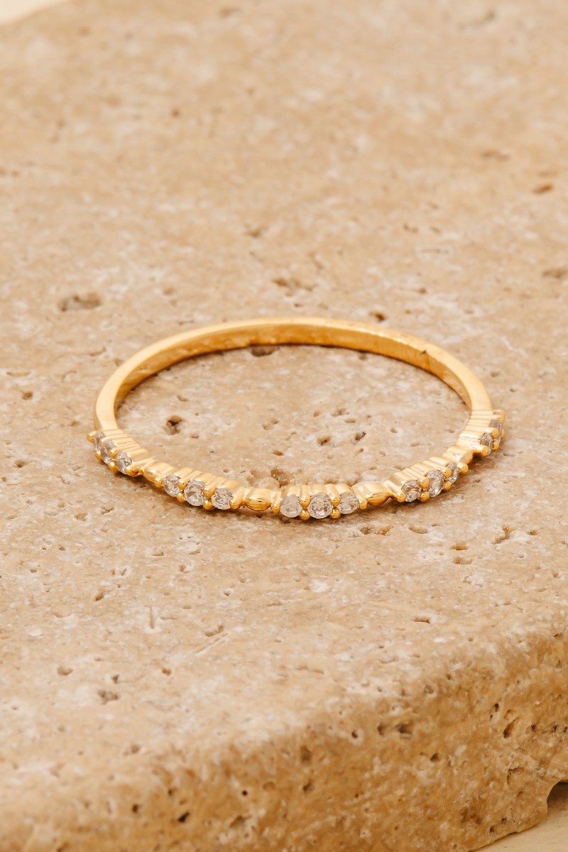 • This ring adds a modern gold dipped cubic zirconia pave band style. Celebrate the art of accessorizing with this piece that effortlessly encapsulates modern trends.