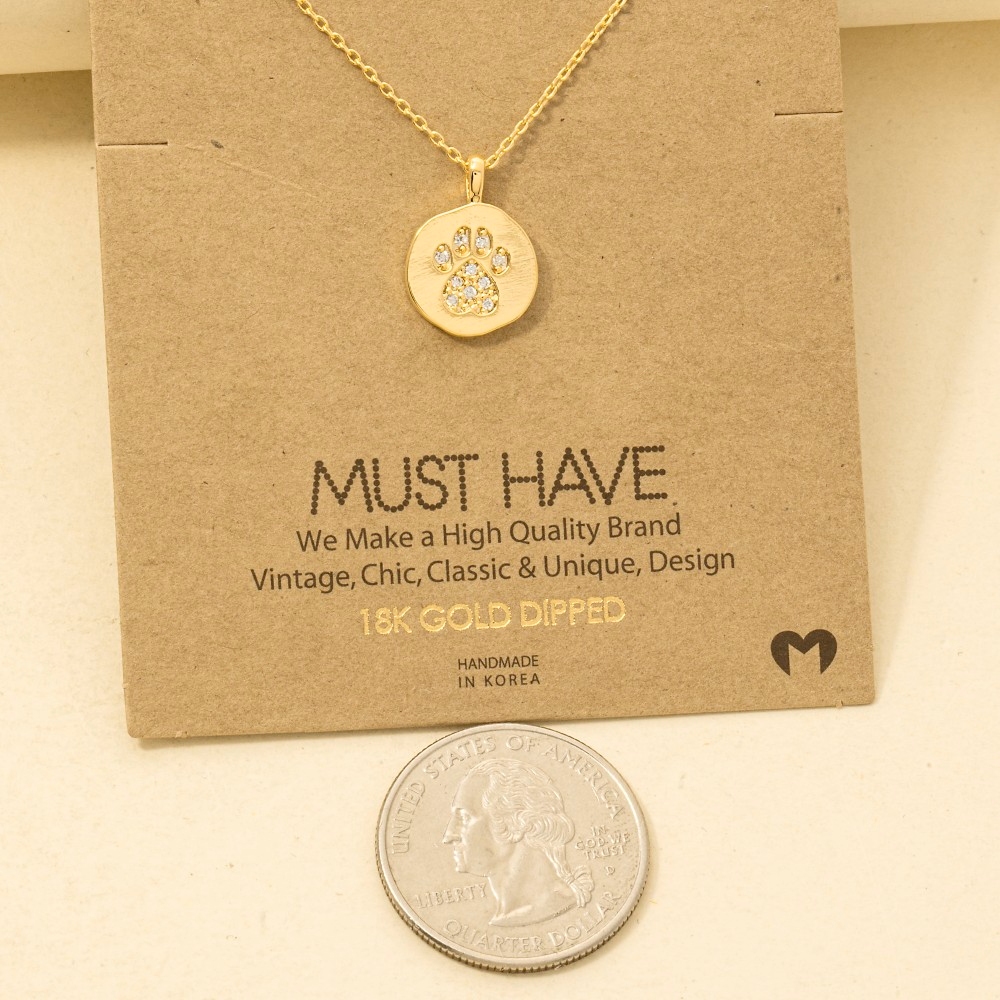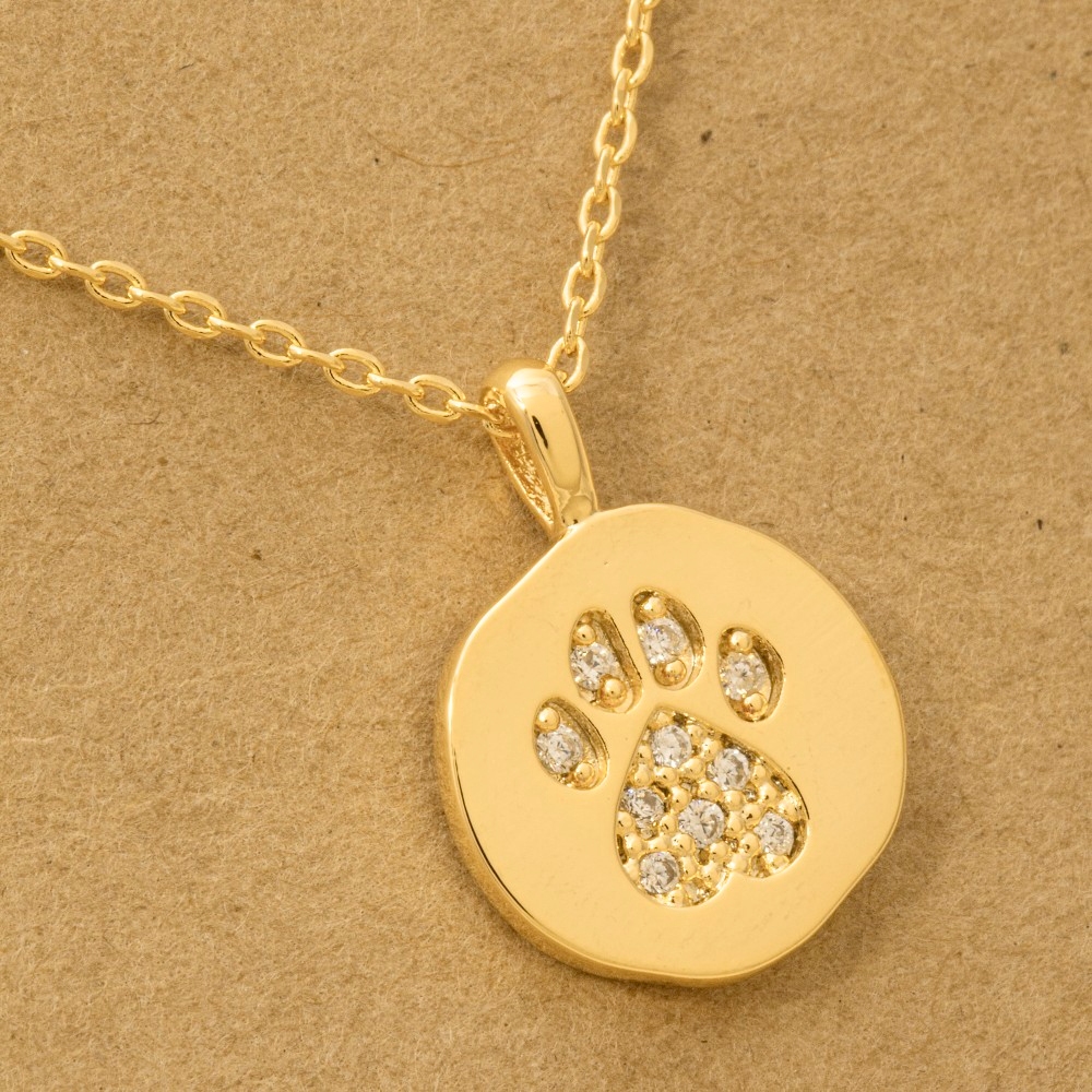 Gold Dipped Pave Dog Paw Pendant Necklace