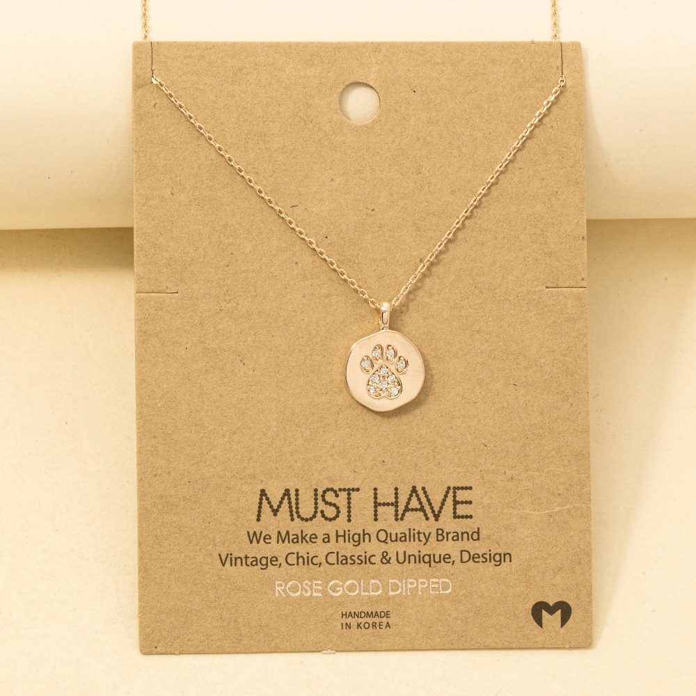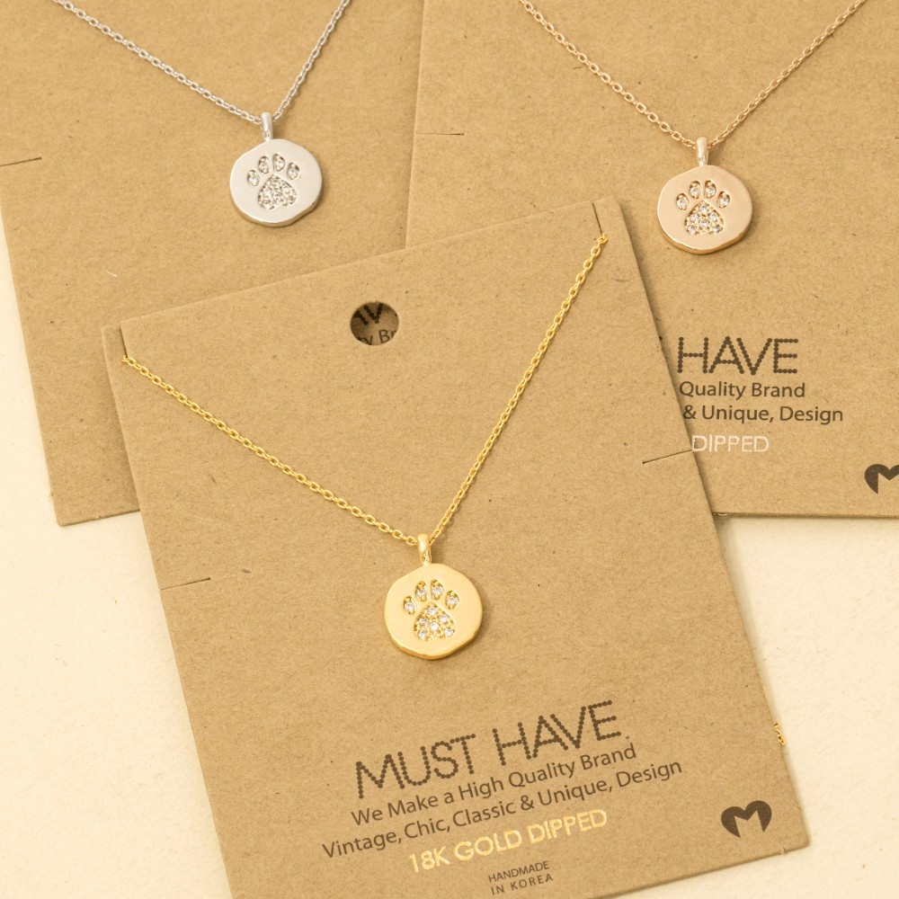 • A versatile and stylish addition to any wardrobe, this pendant necklace embodies a sophisticated gold dipped pave dog paw design. Unleash the power of style with this versatile pendant necklace, perfect for enhancing the charm of your wardrobe. Available in G, S. This item is sold in packs of 12.