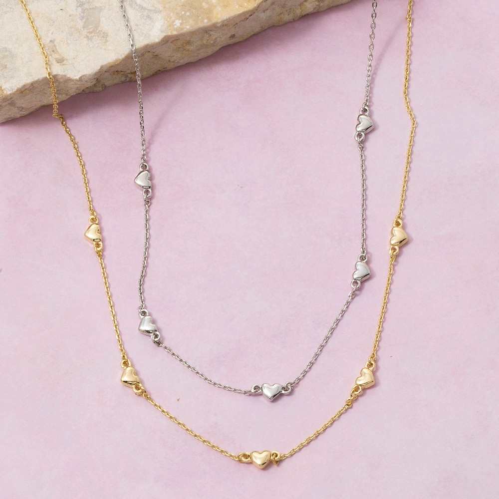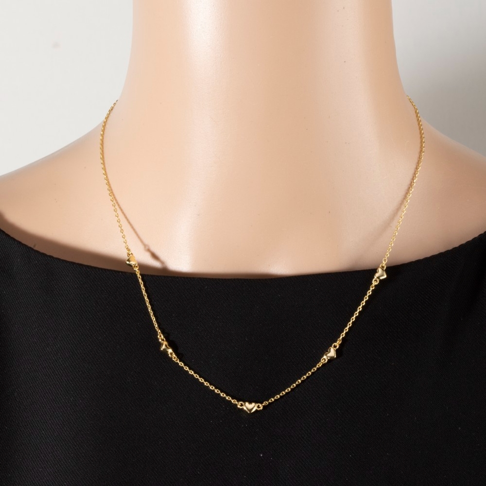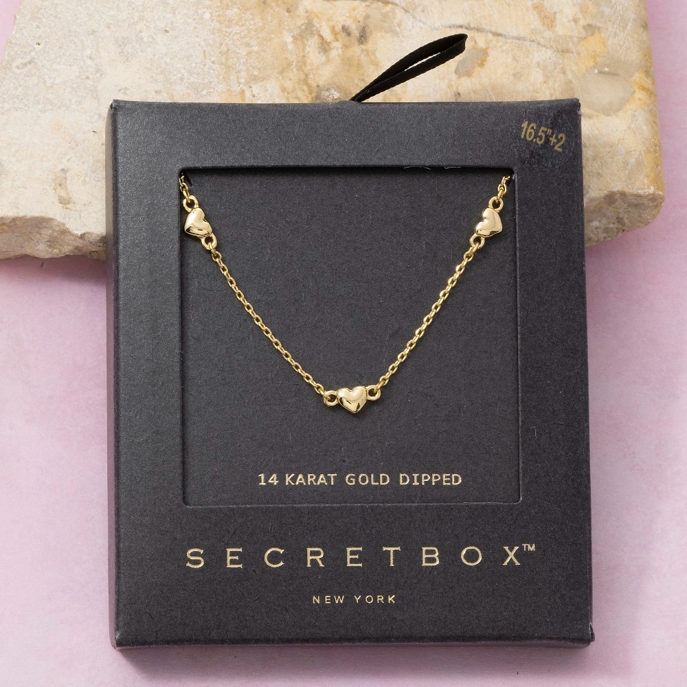 The perfect way to complete any outfit, this necklace shows off a distinctive 14k gold dipped triple heart station design. Elevate your style effortlessly with this versatile necklace, enhancing the appeal of any ensemble. Available in GD, WG. This item is sold in packs of 1.